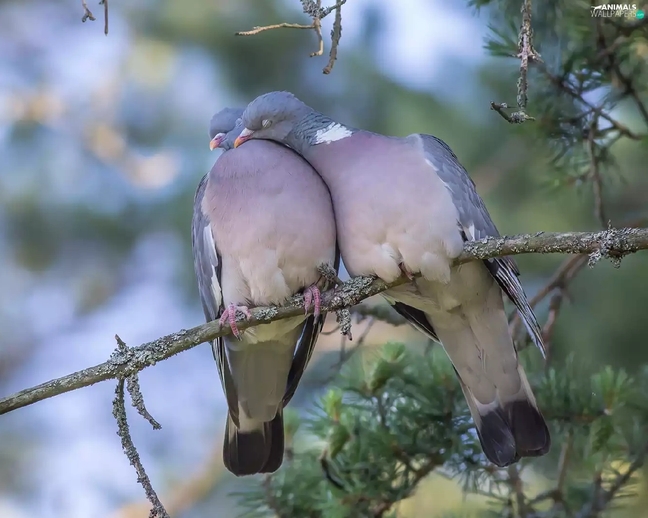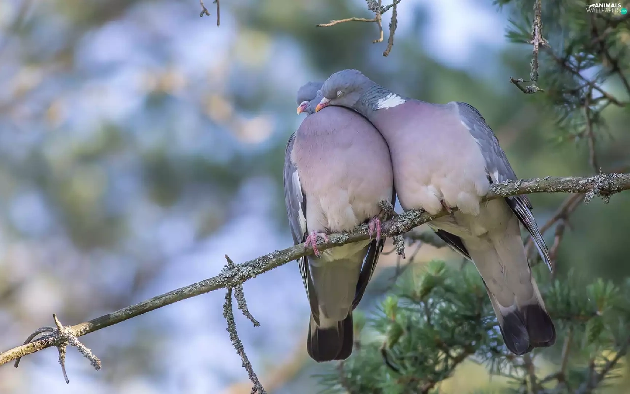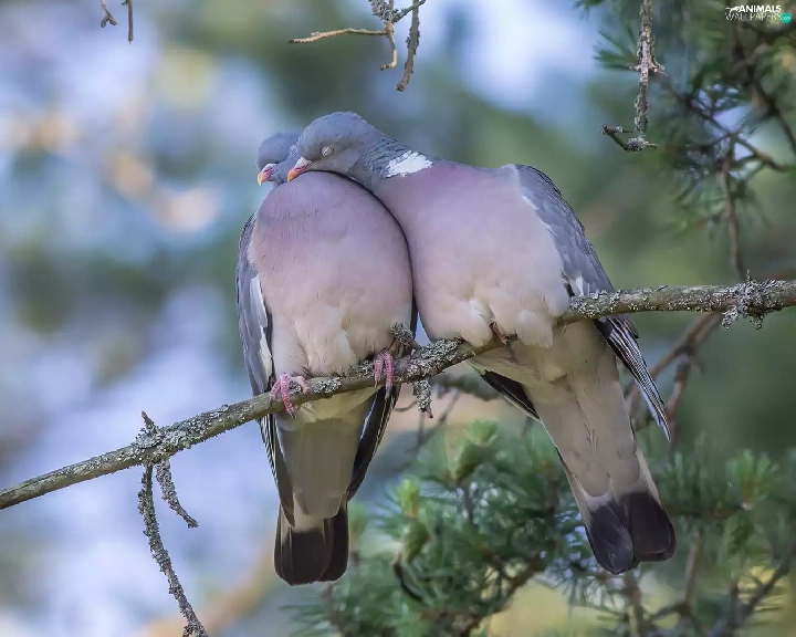 birds, Deep, twig, cuddled