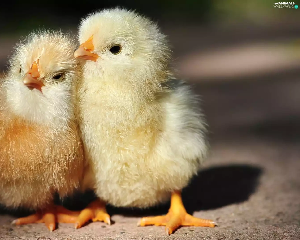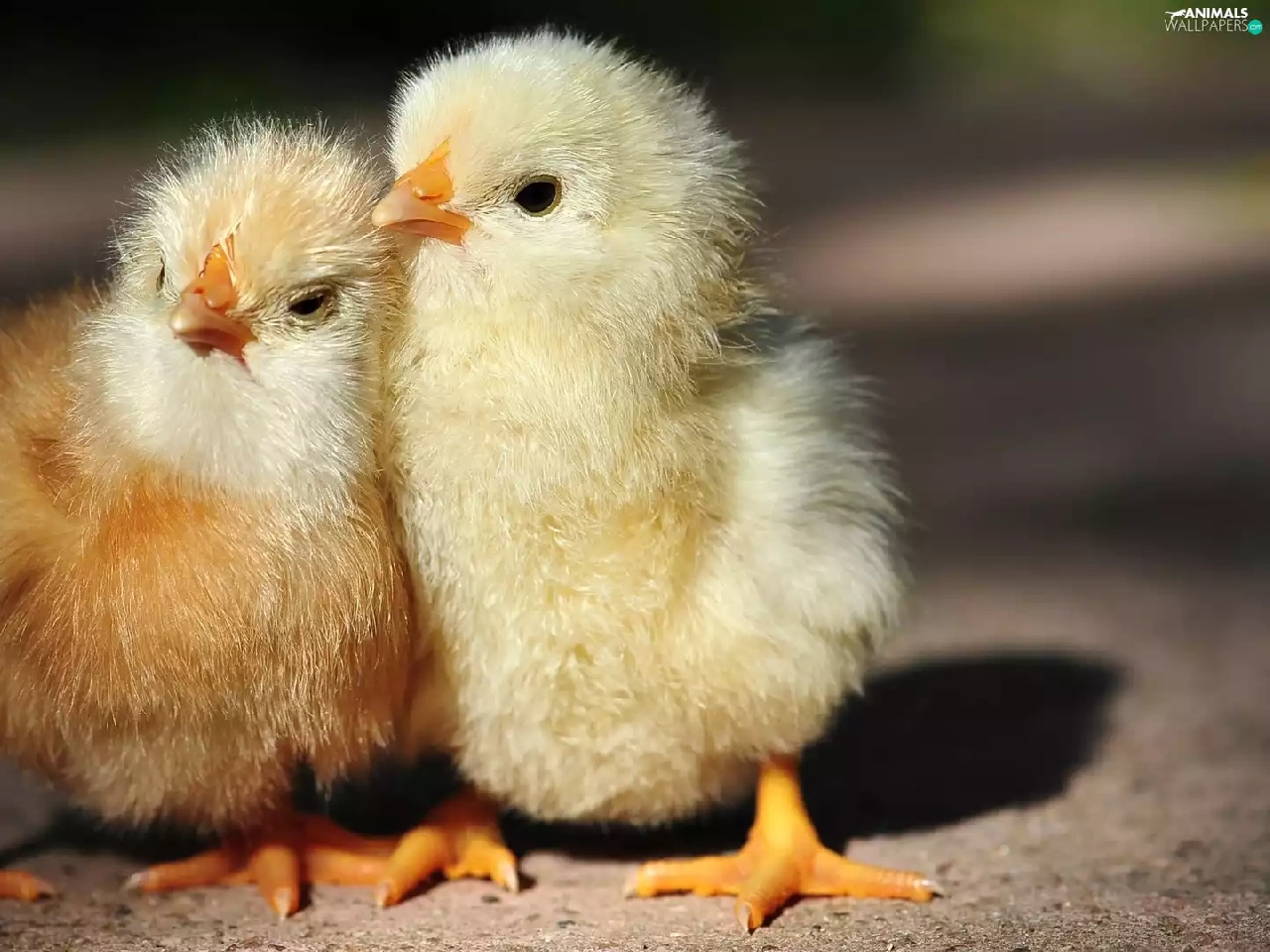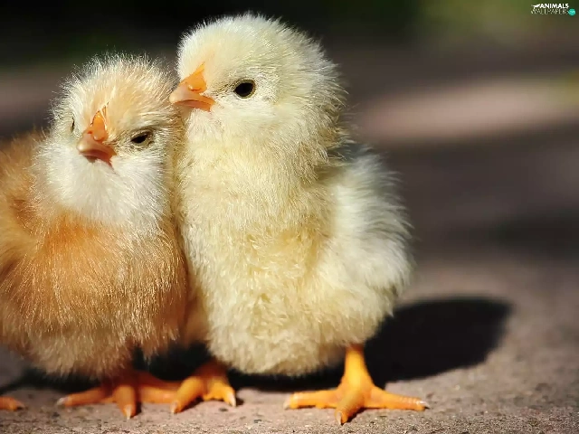 chickens, Two cars, cuddled