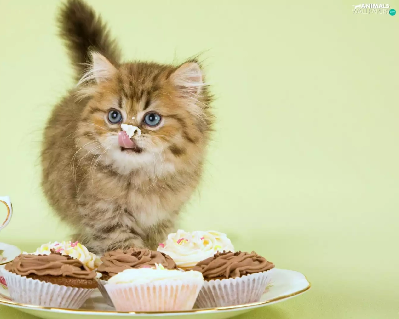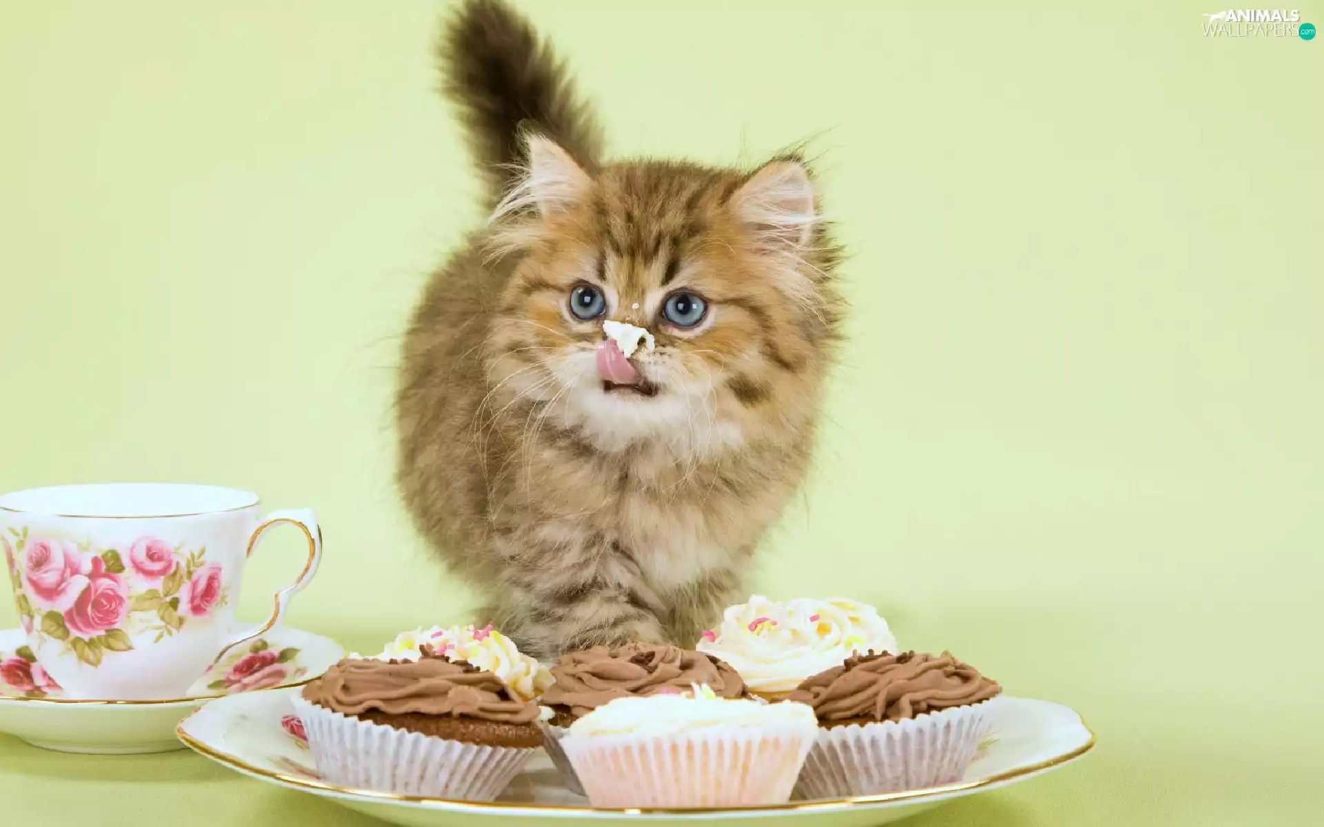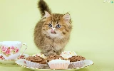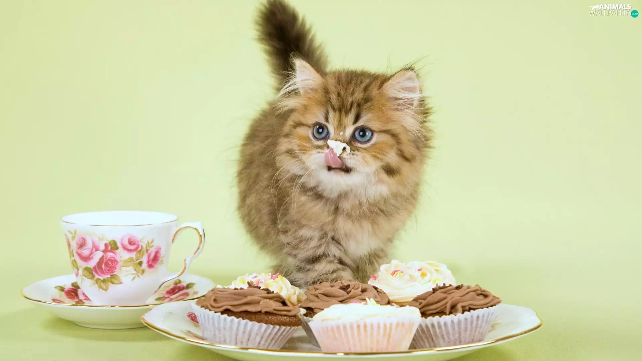 cup, kitten, Muffins