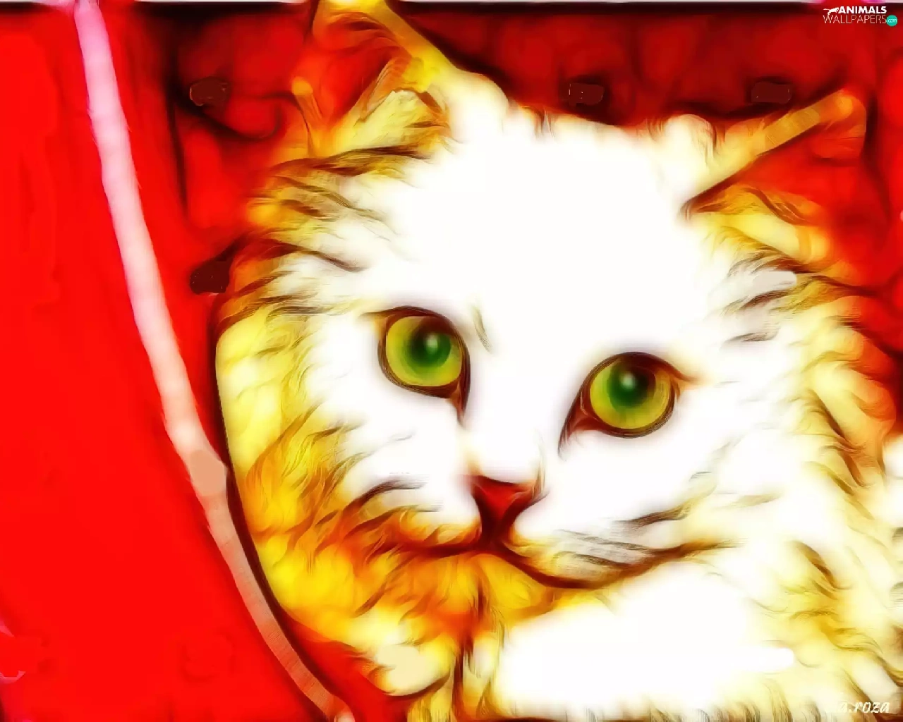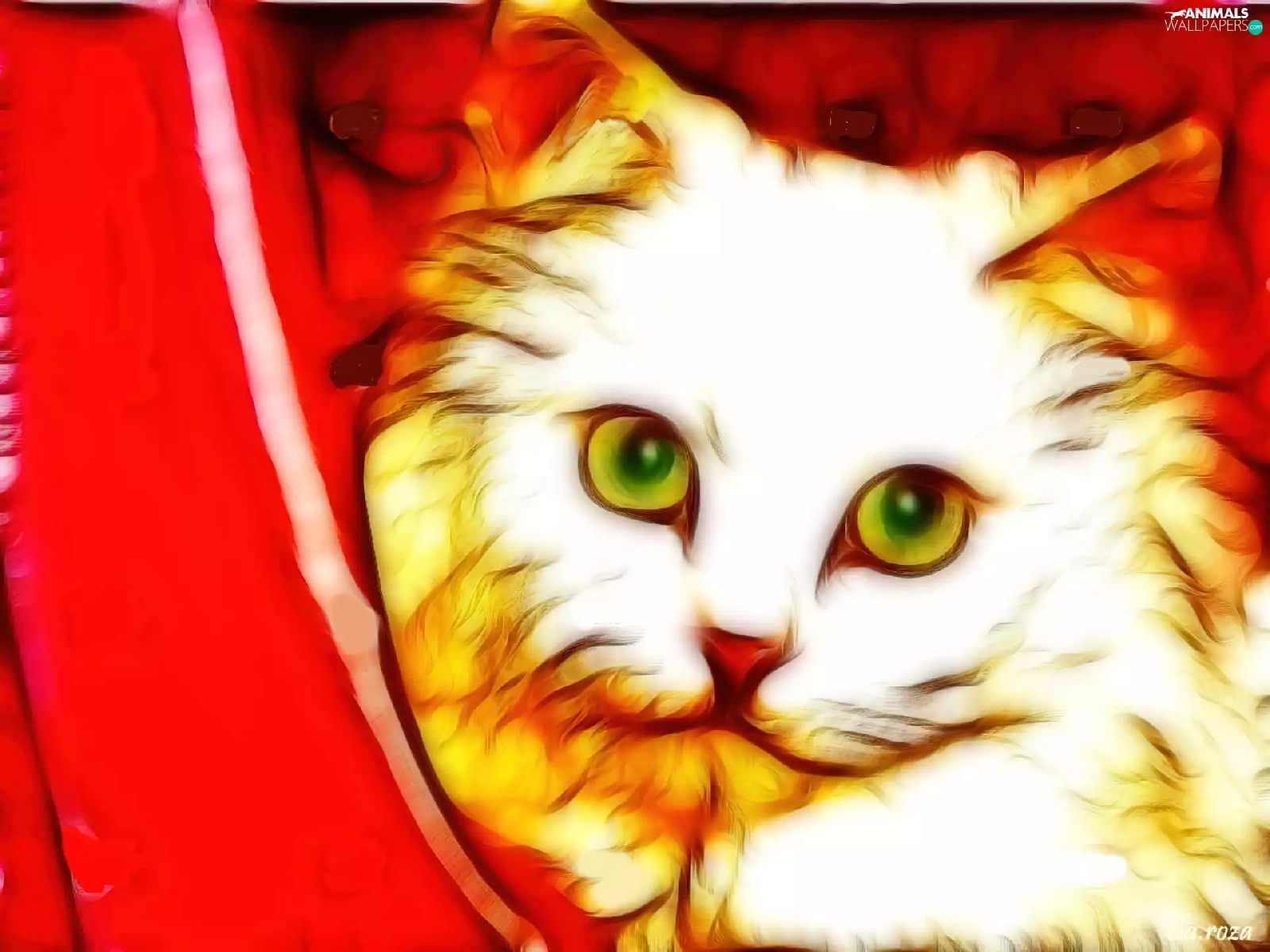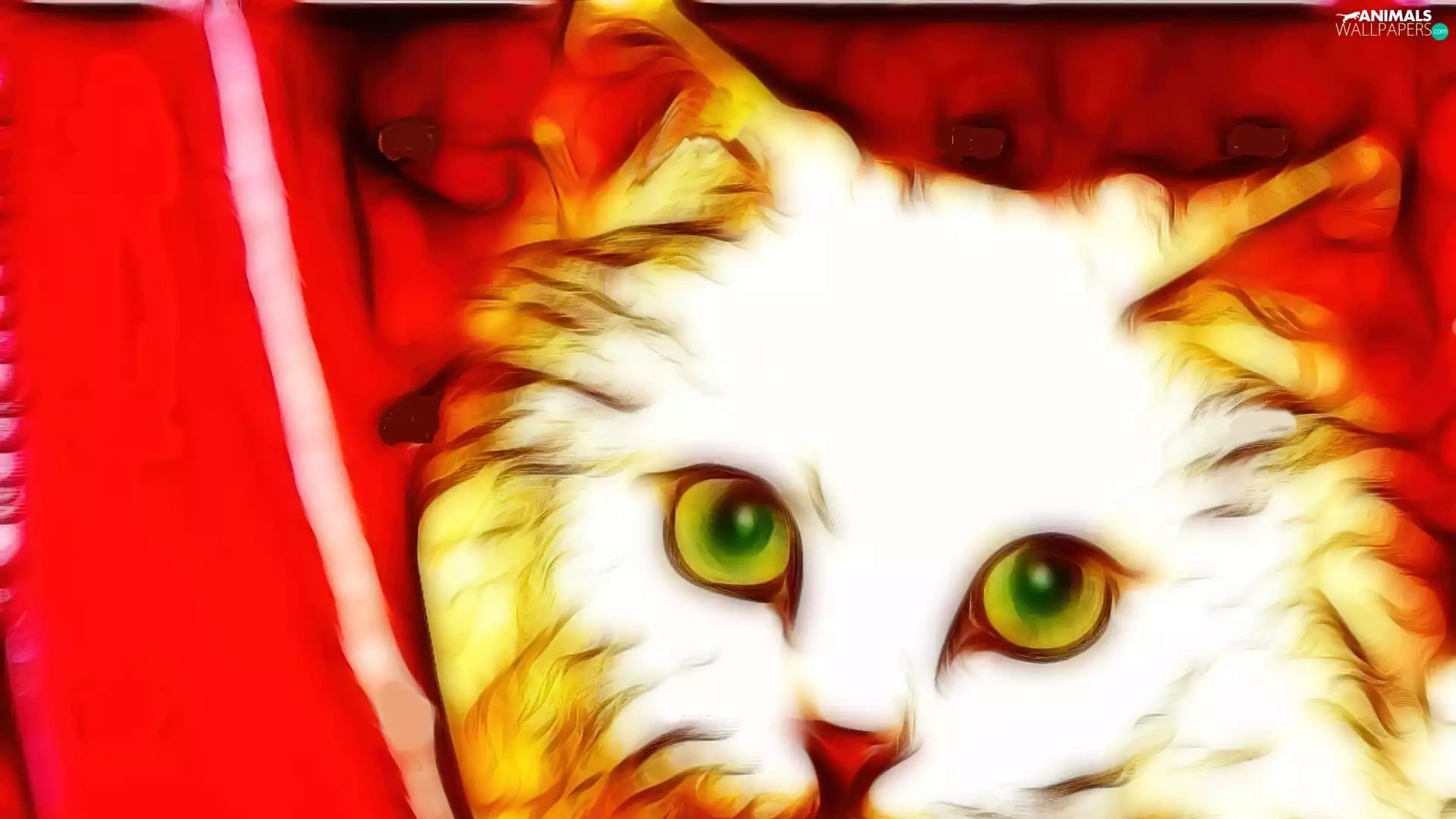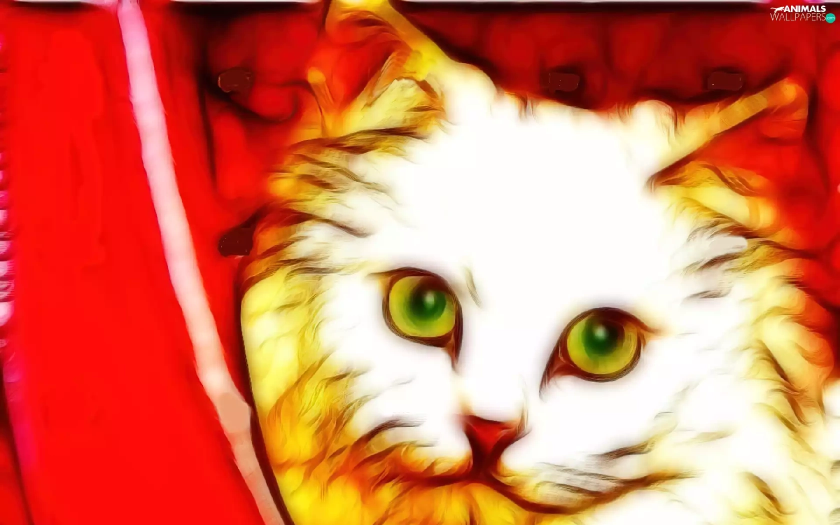 cat, curtain, Fractalius, red hot