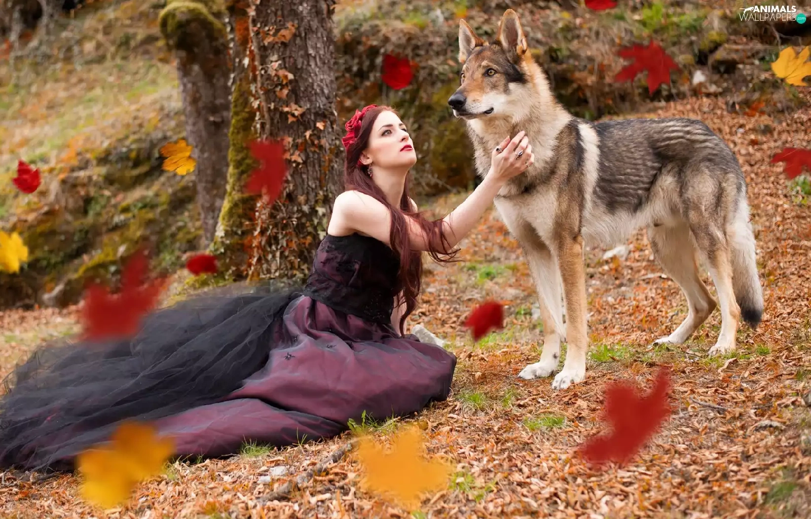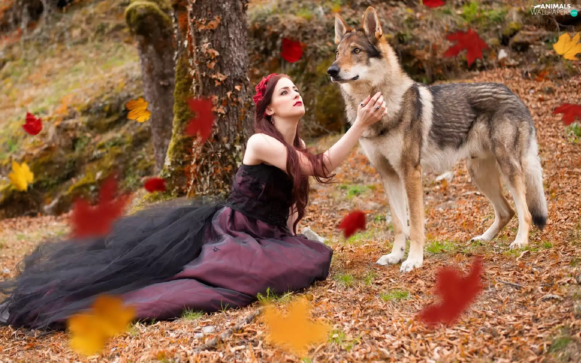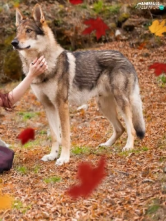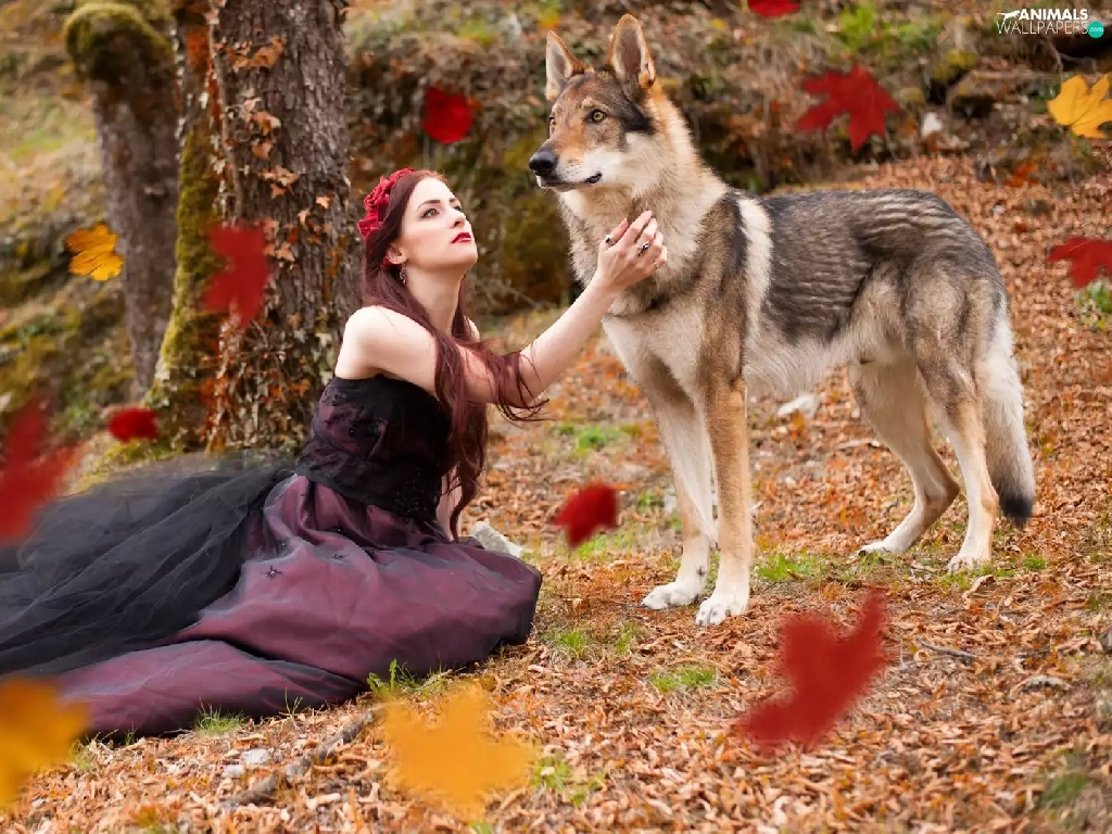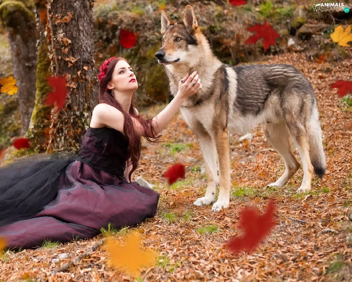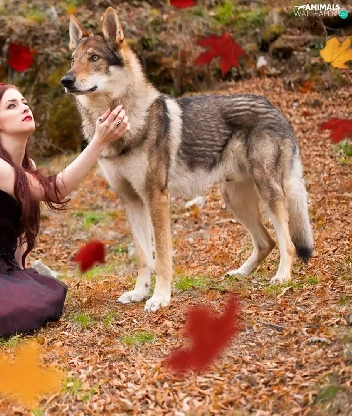 Falling, Leaf, dog, Czechoslovakian Wolfdog, Women