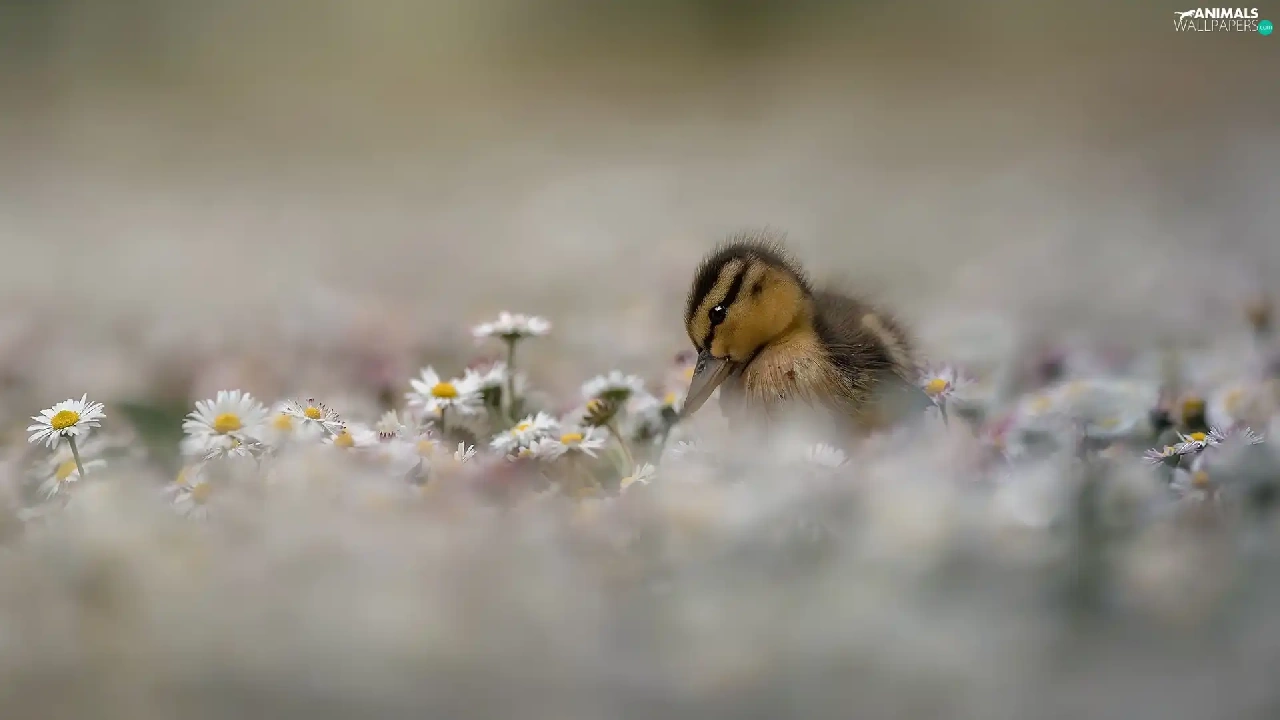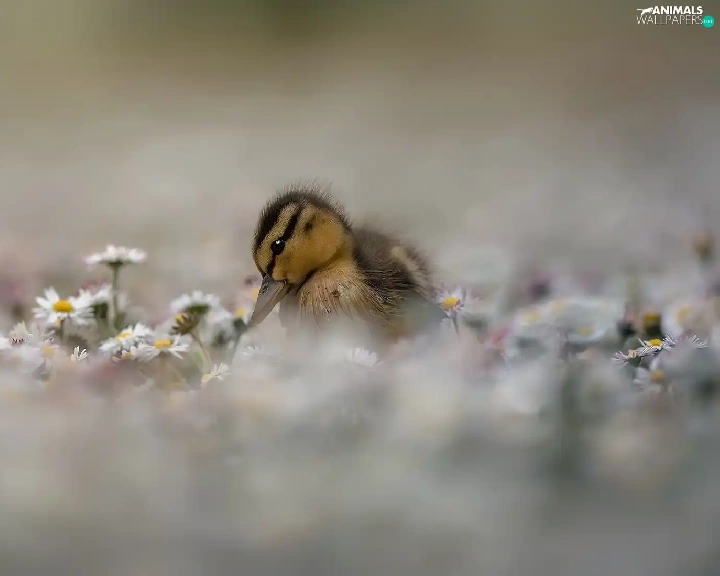 Flowers, daisies, duck, Ducky, small