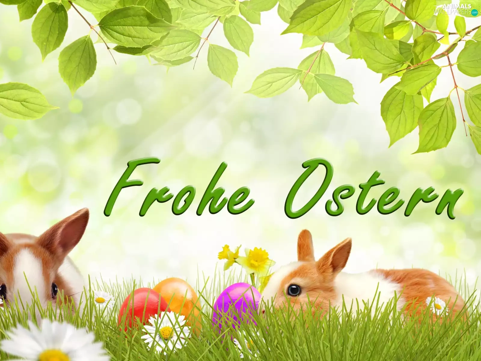 eggs, Easter, Daffodils, daisies, Flowers, Rabbits
