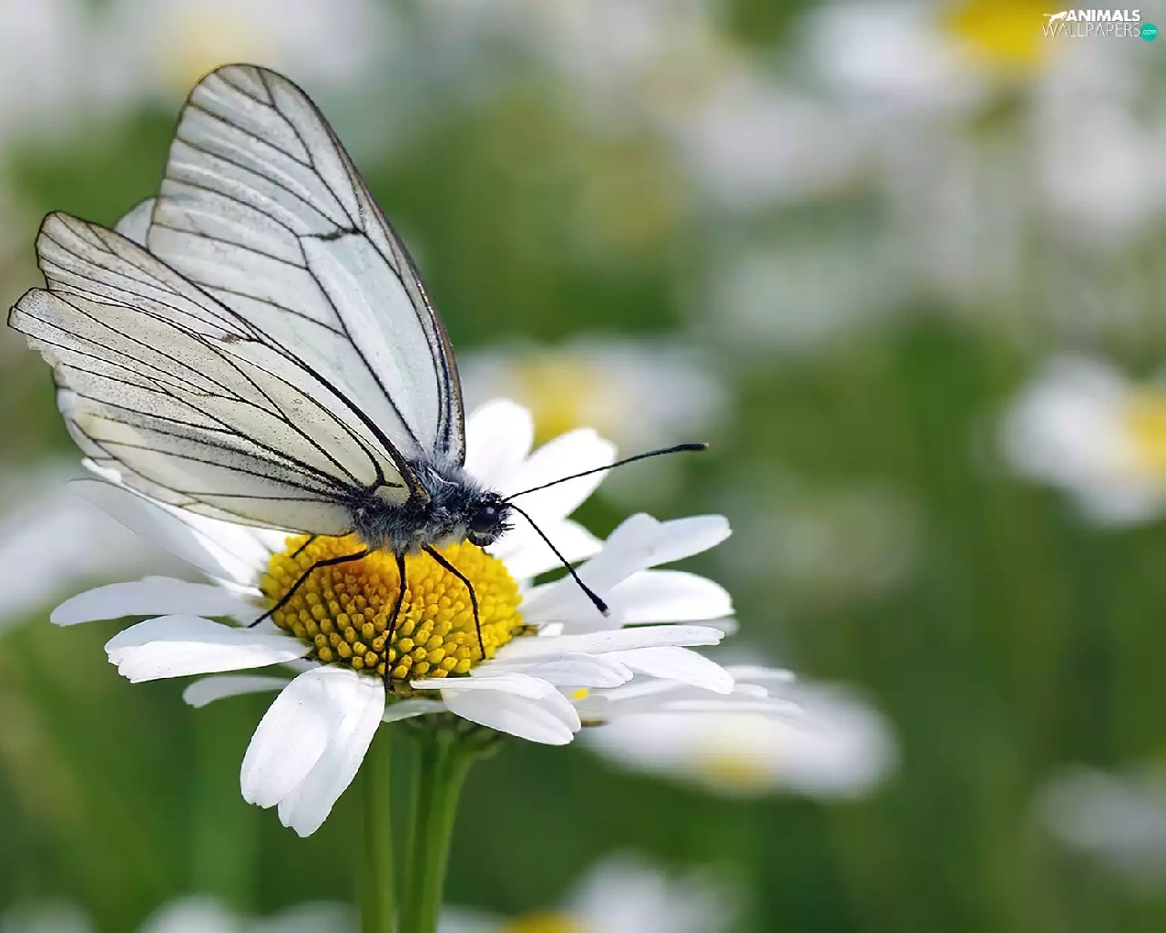 daisy, butterfly, butterfly
