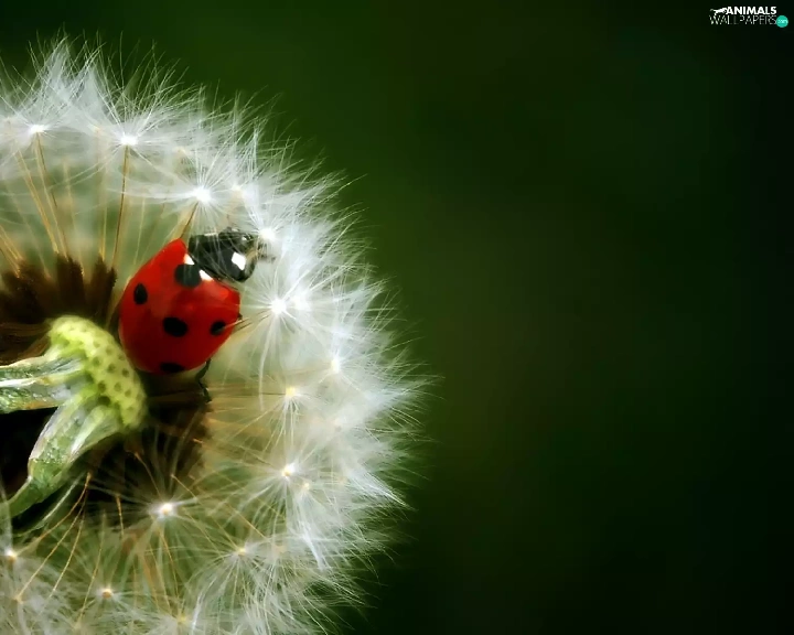Dandelion, ladybird, an