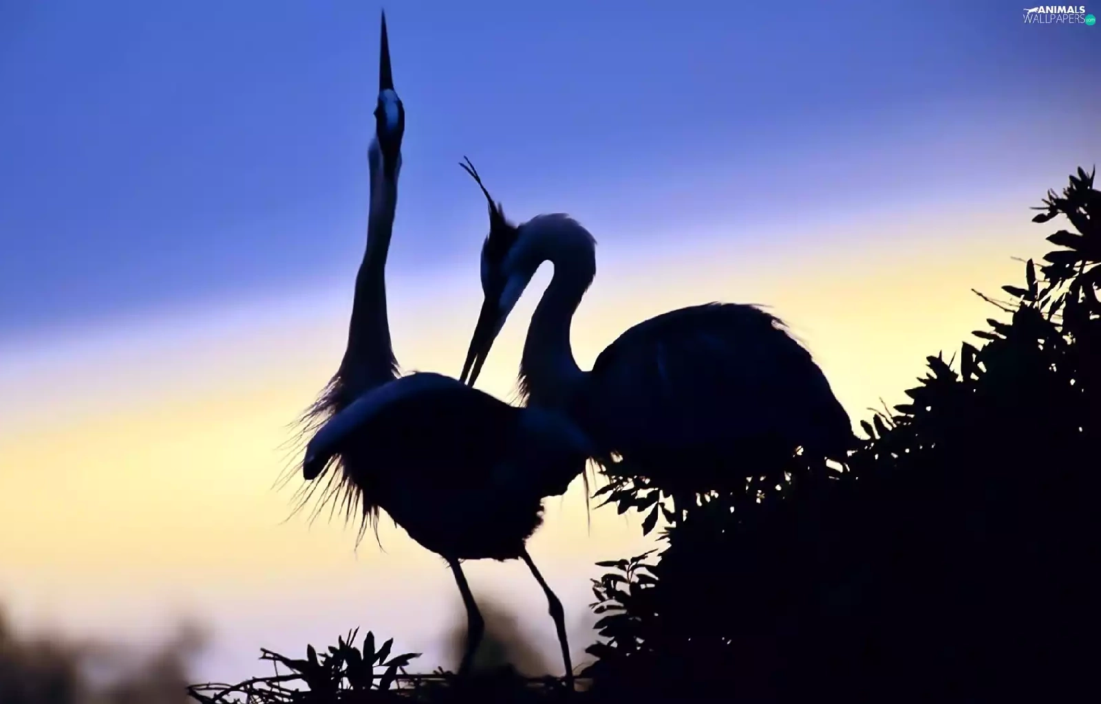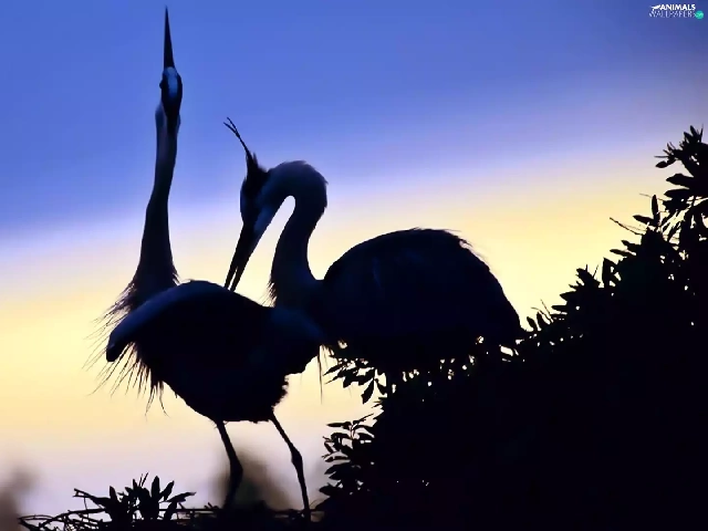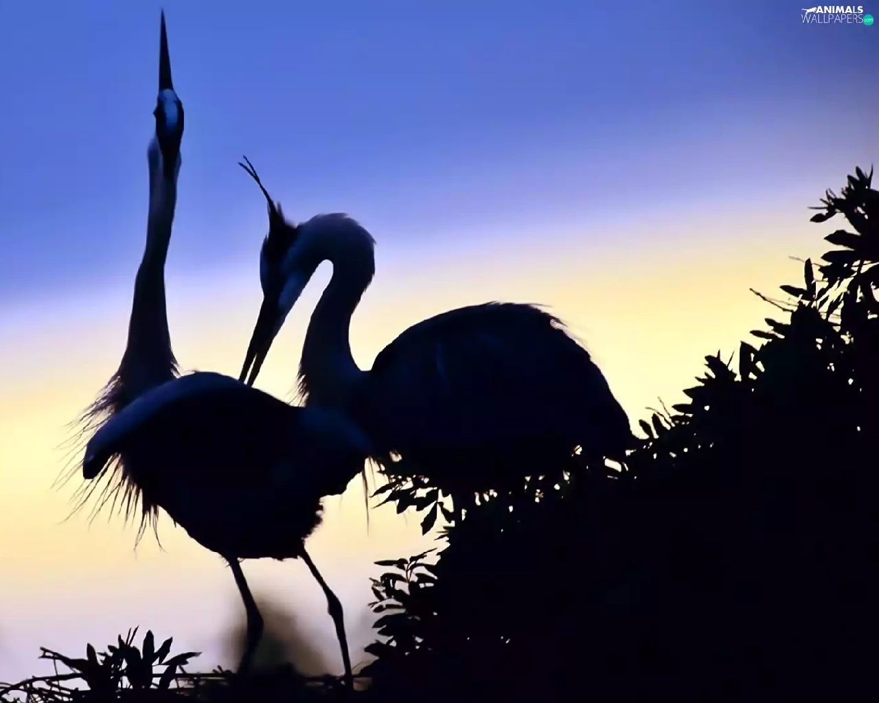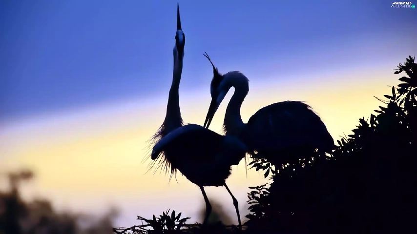 dawn, cranes