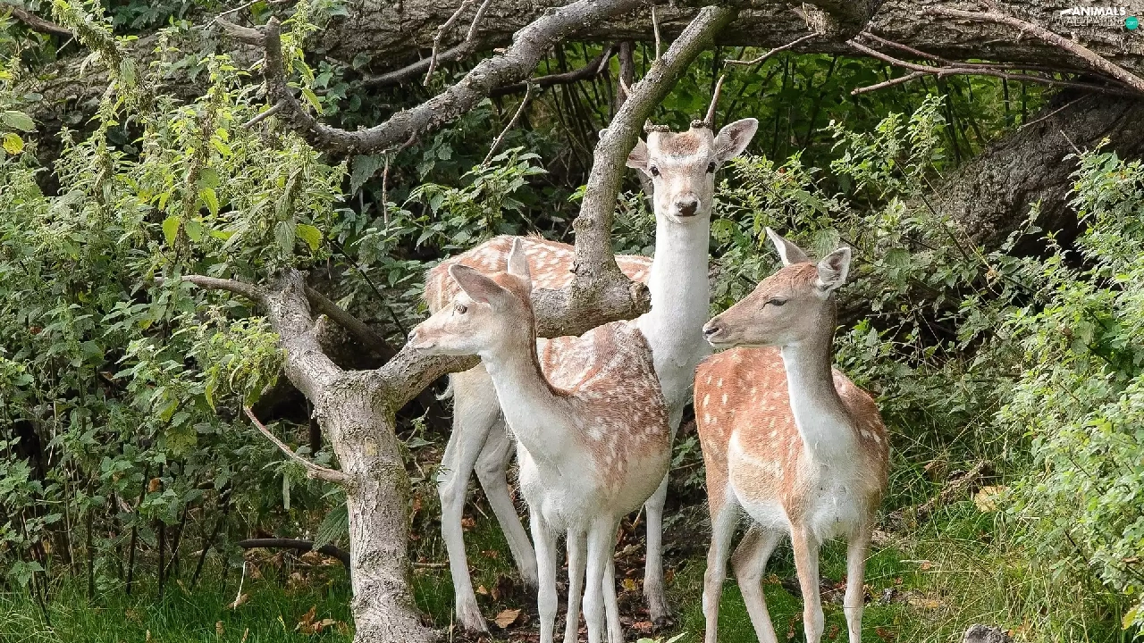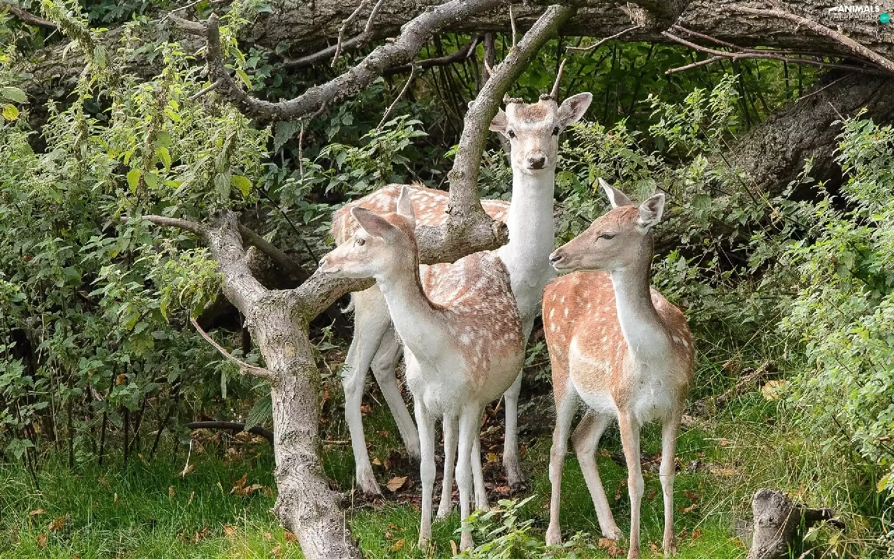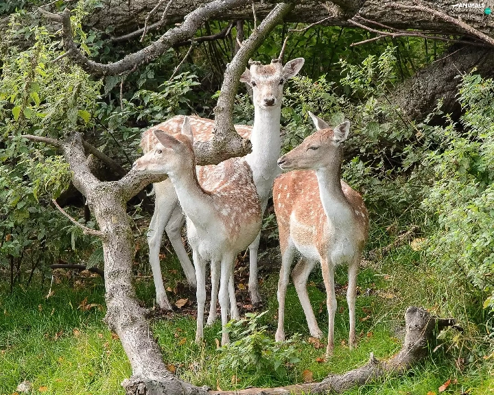 deer, forest, car in the meadow, Branches of Trees