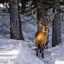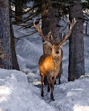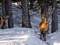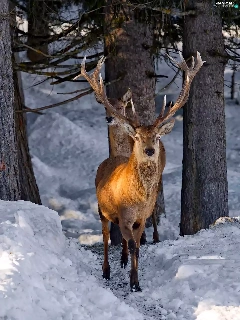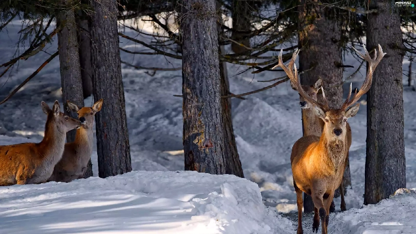 forest, light breaking through sky, deer, winter, deer