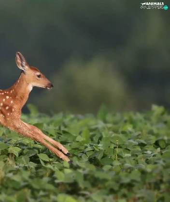 jump, deer, fuzzy, background, Field, White-tailed Deer