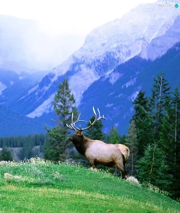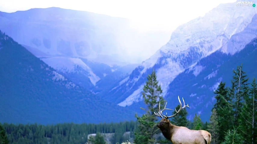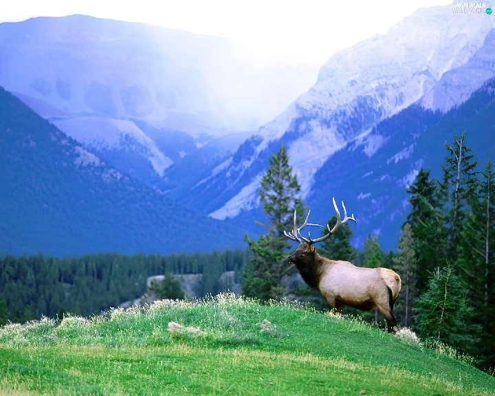 lonely, peaks, Mountains, deer