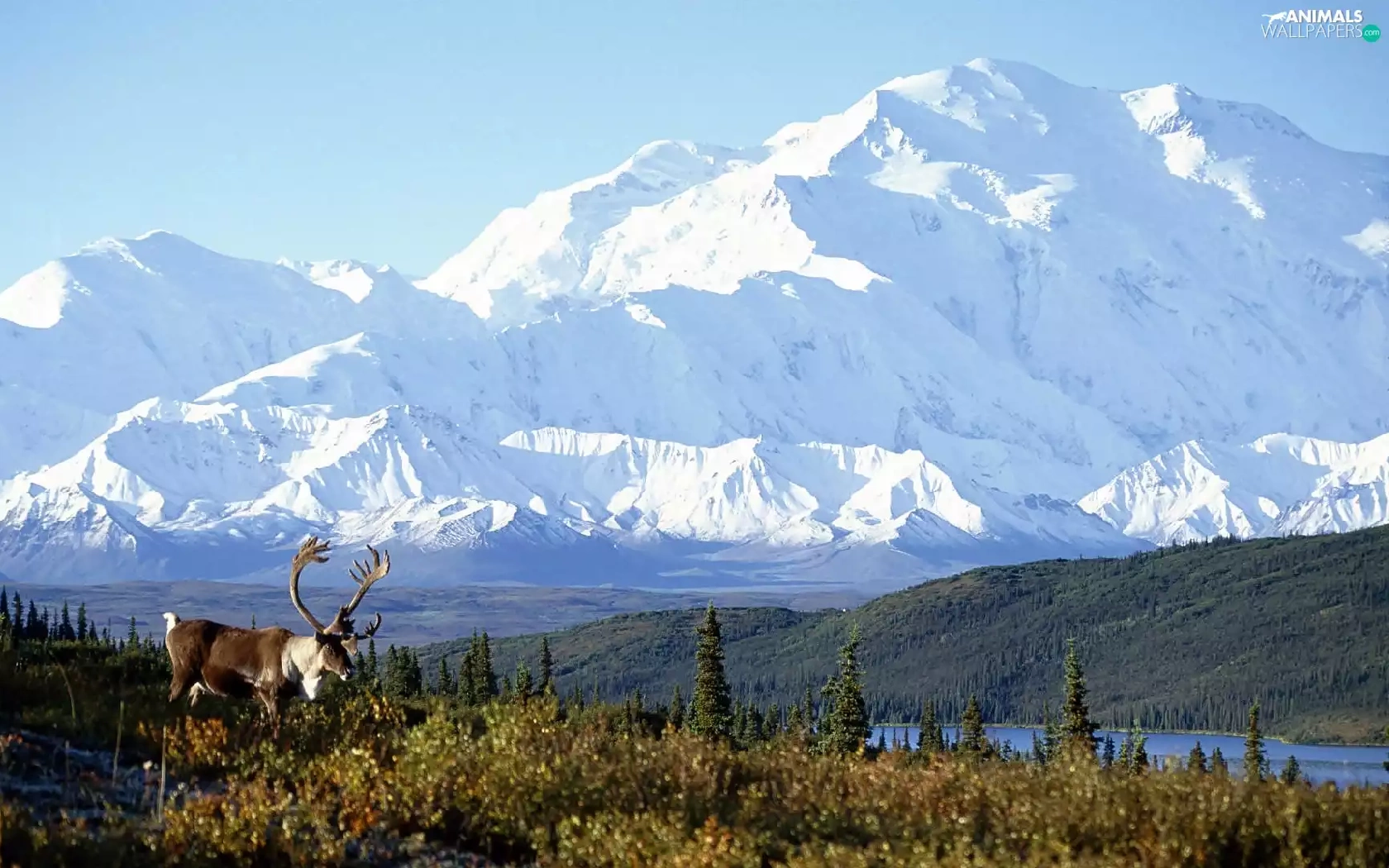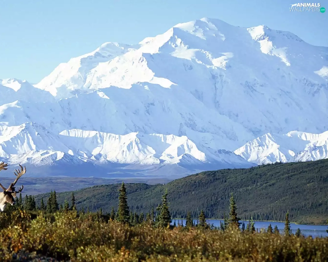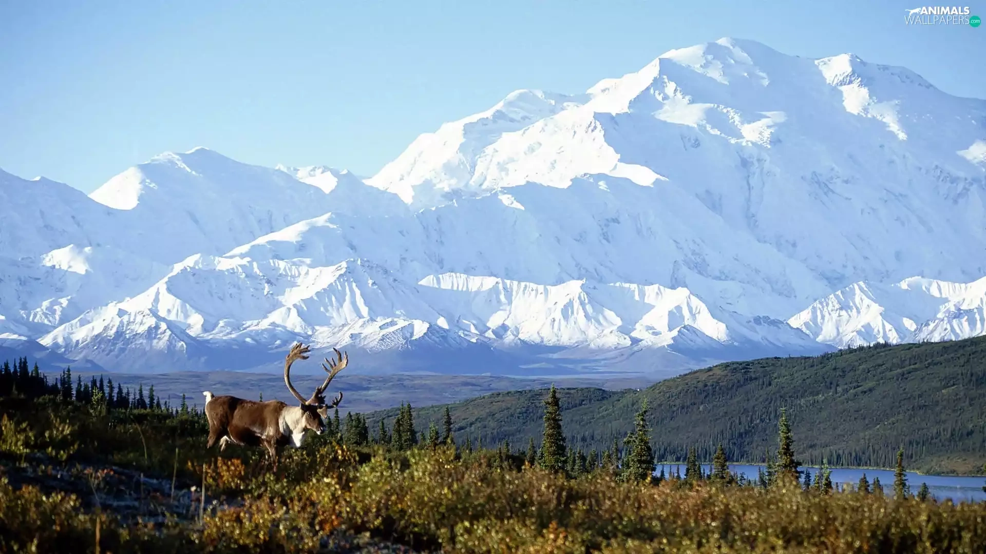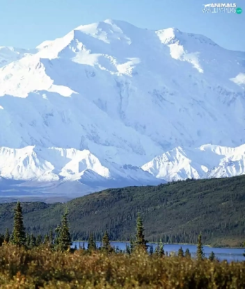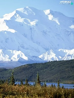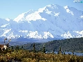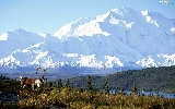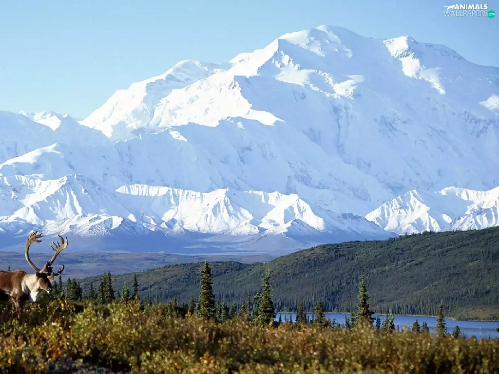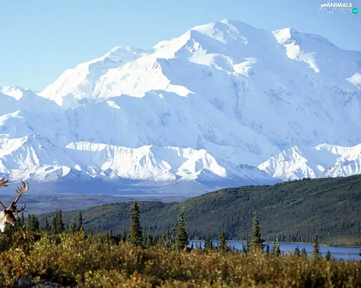 Meadow, Deer, Mountains, lake, Alaska