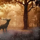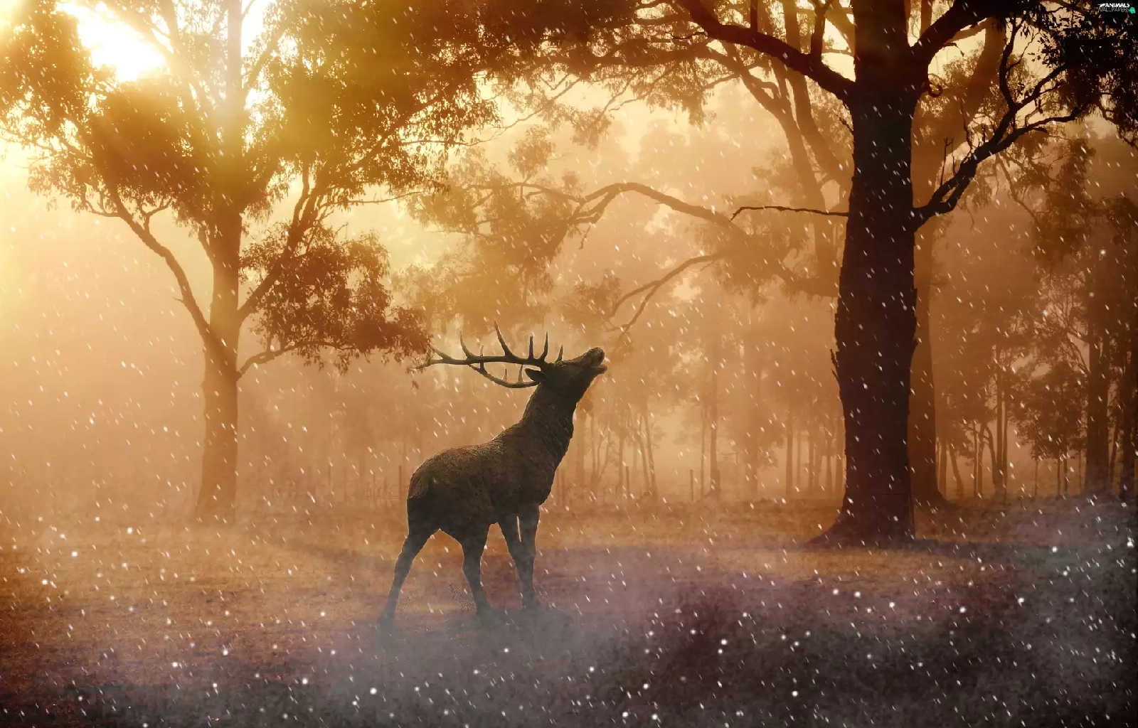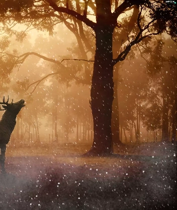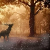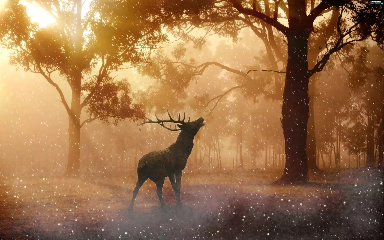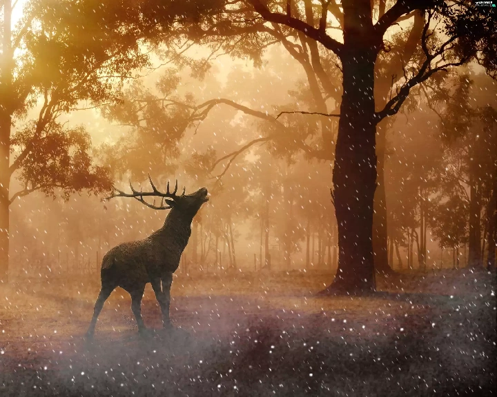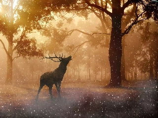rays of the Sun, graphics, Fog, forest, deer