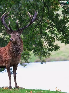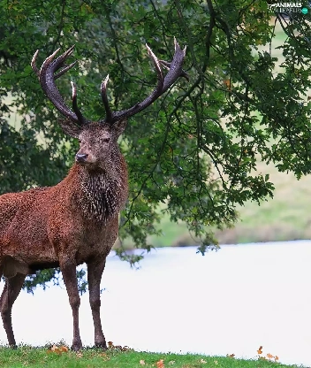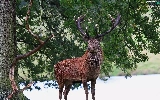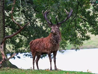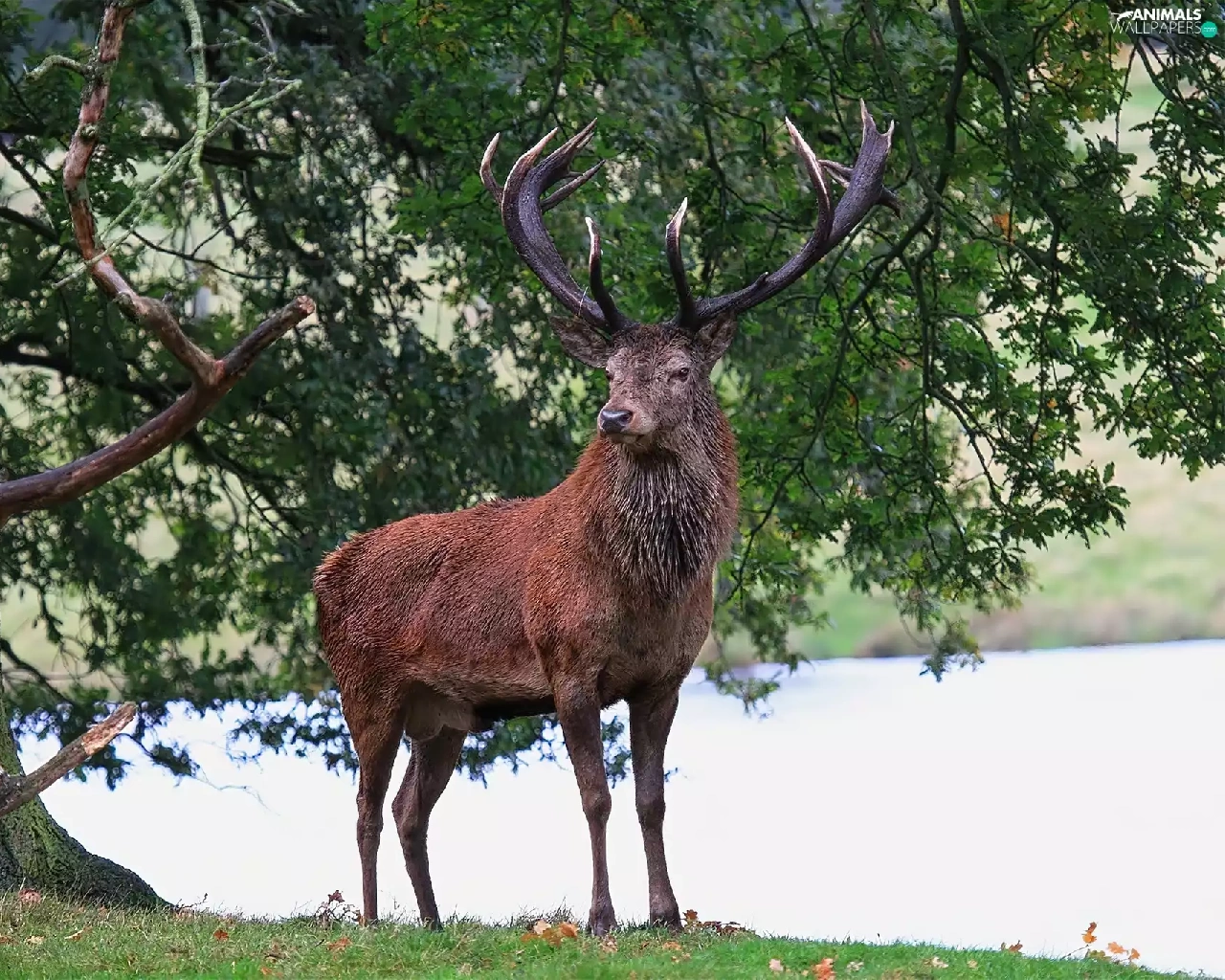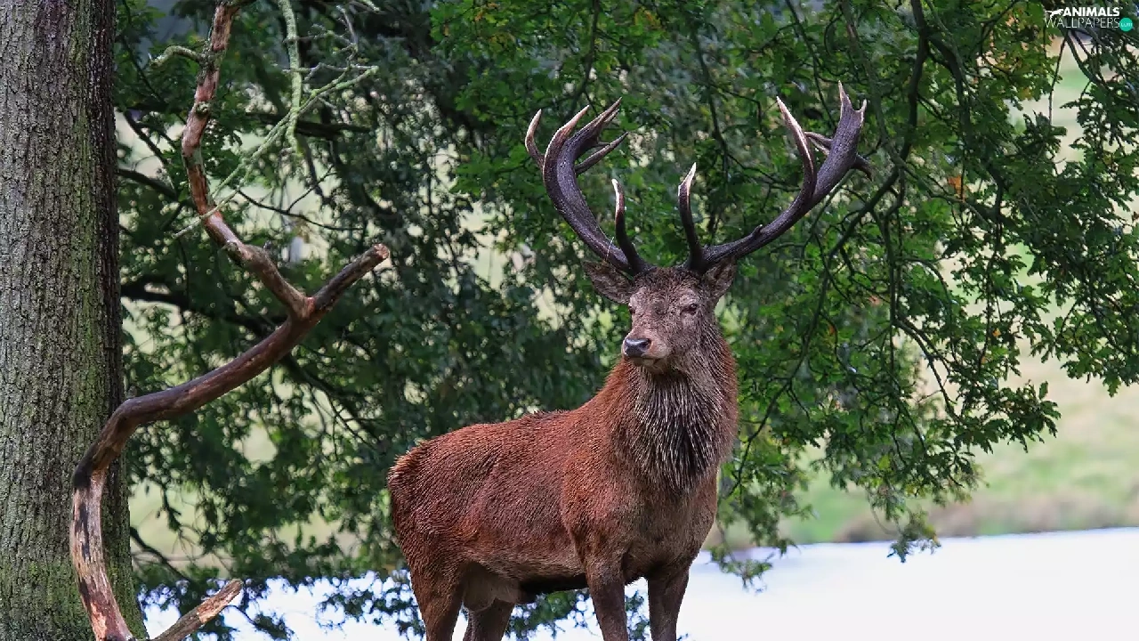 deer, trees