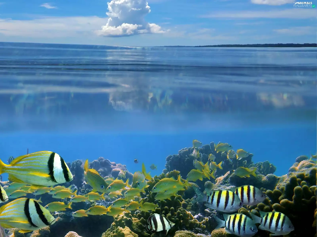 sea, fish, Sky, Depths