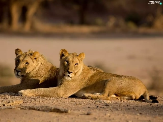 lions, Two cars, Desert