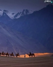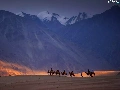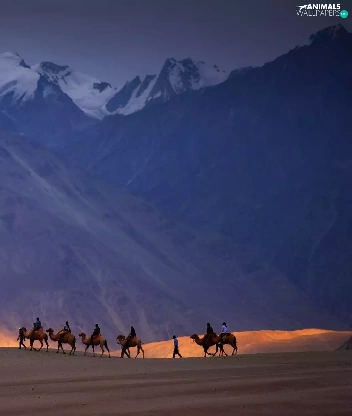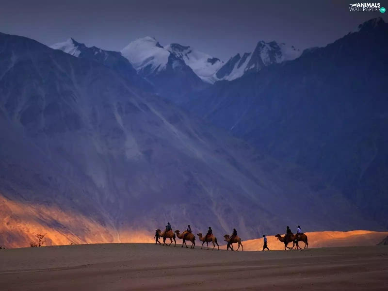 Mountains, Camels, caravan, Desert