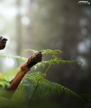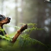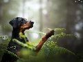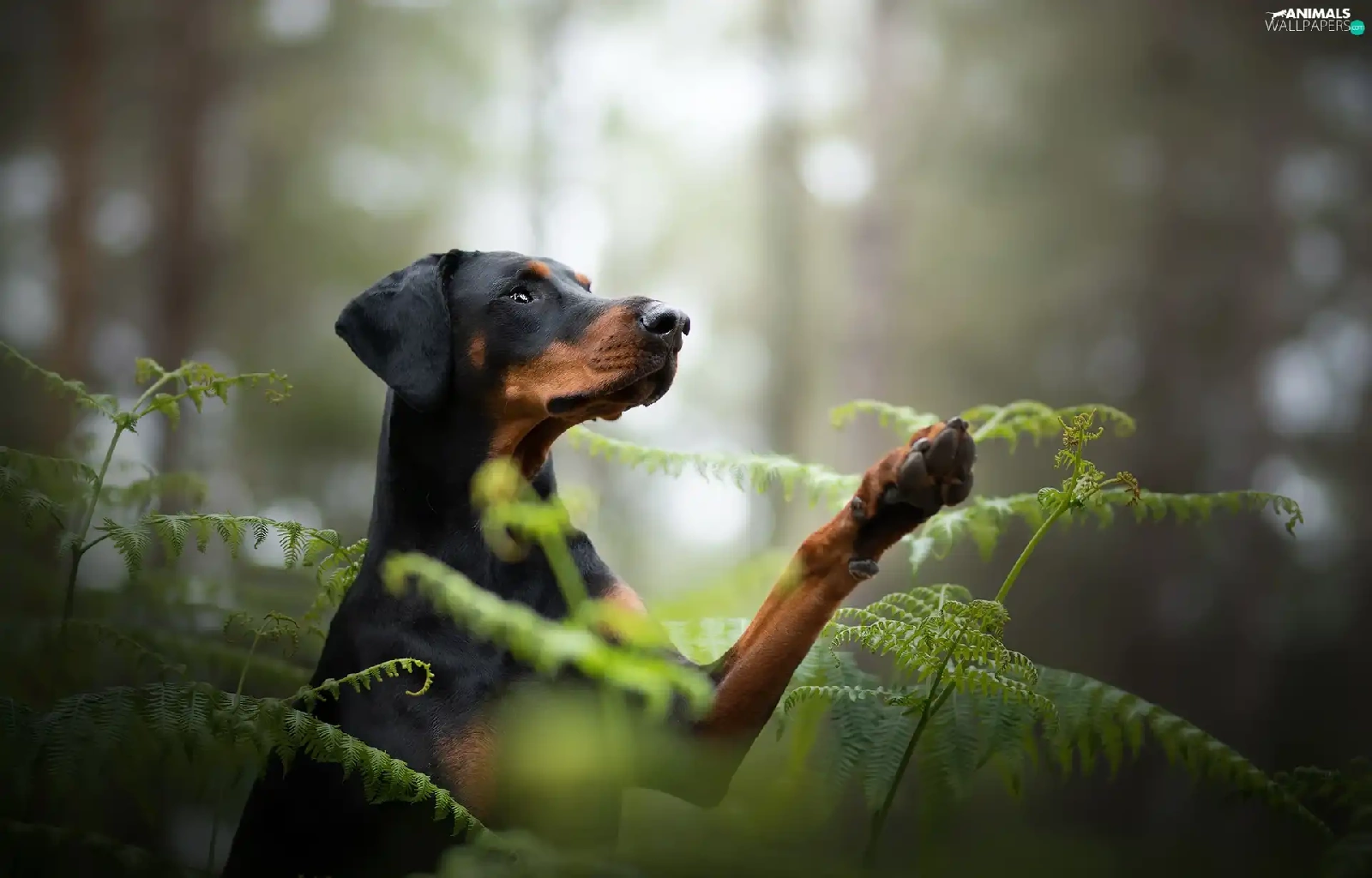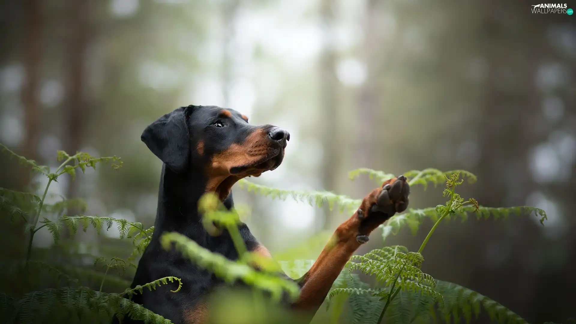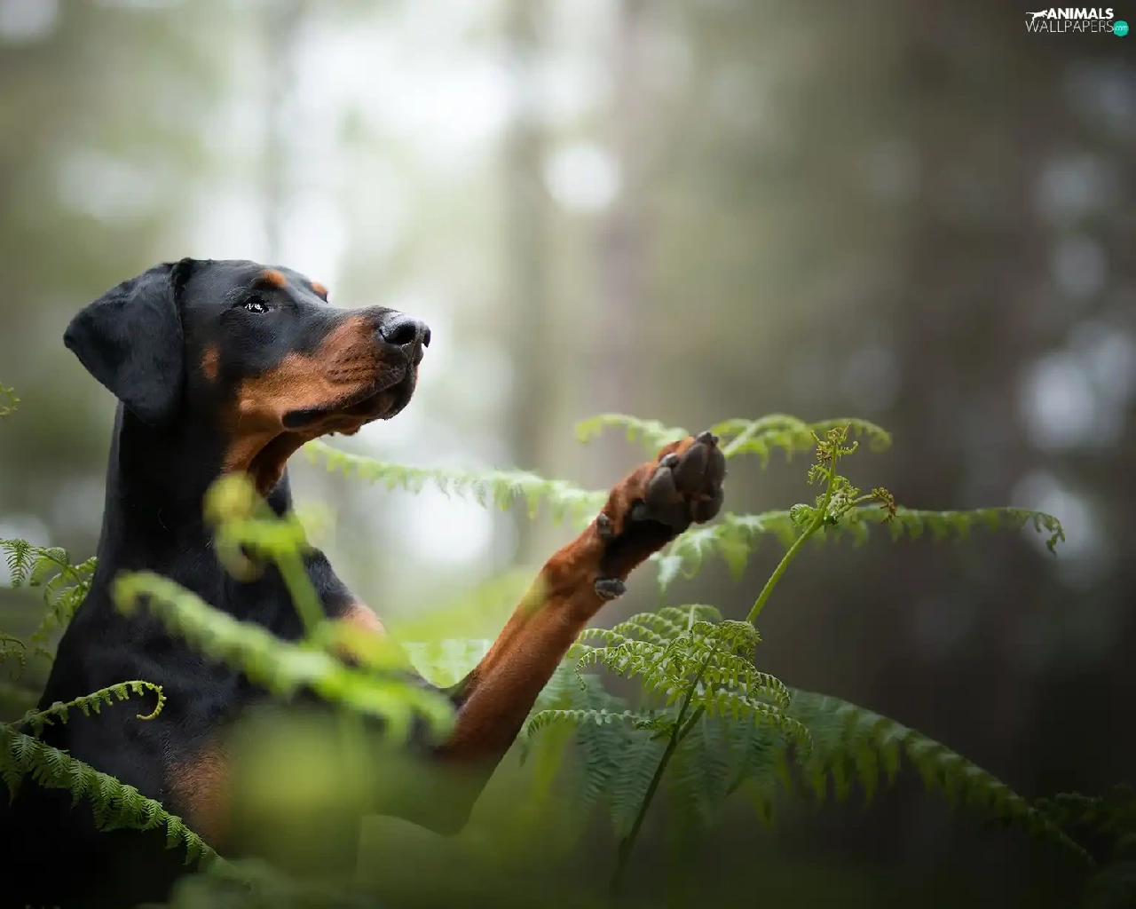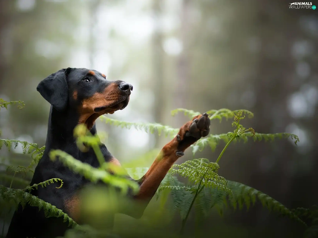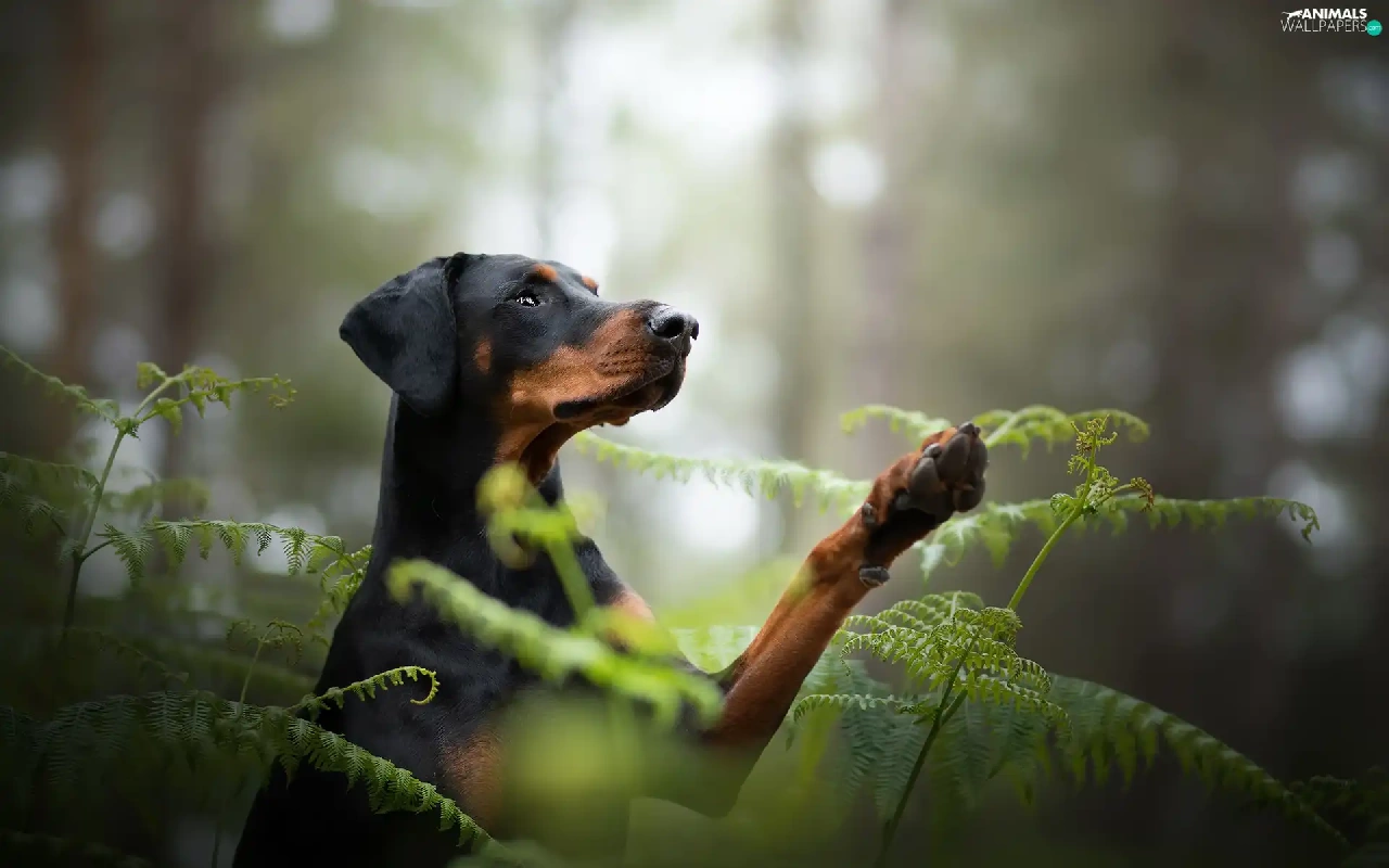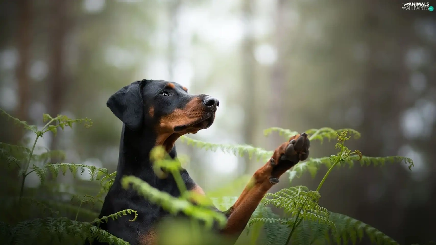 dog, fern, forest, Doberman