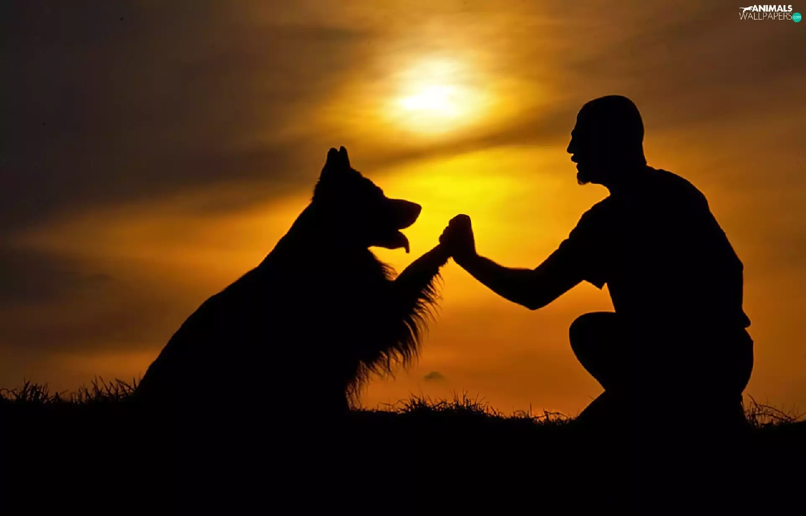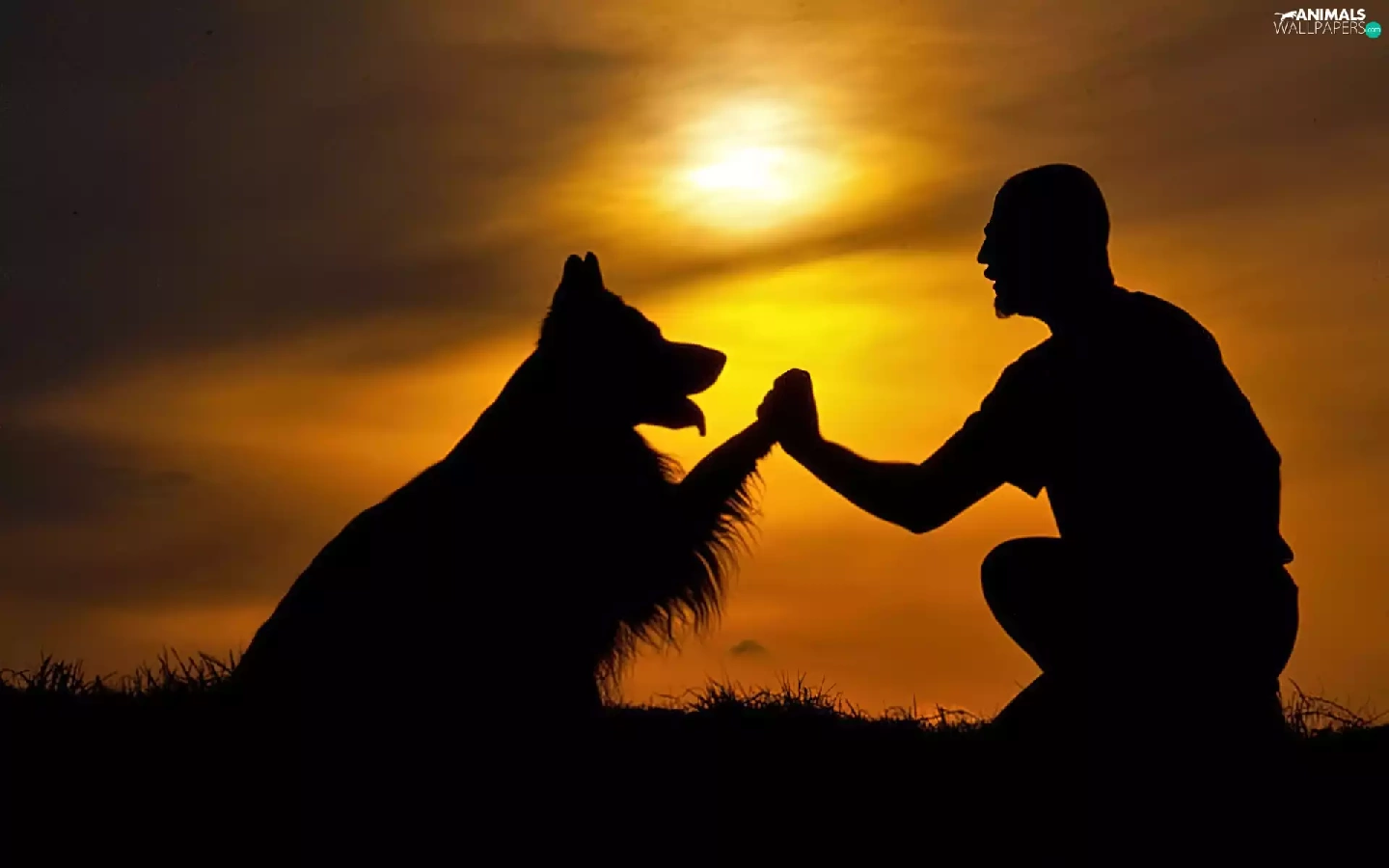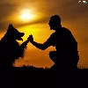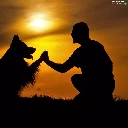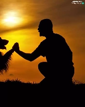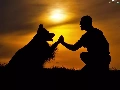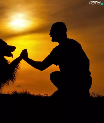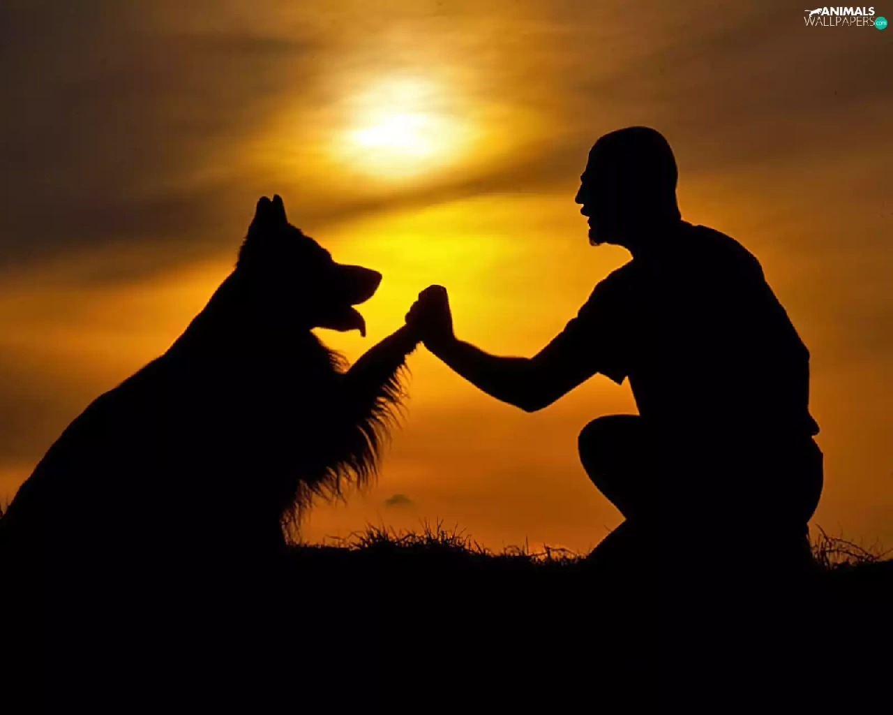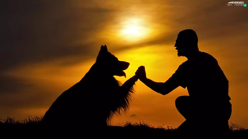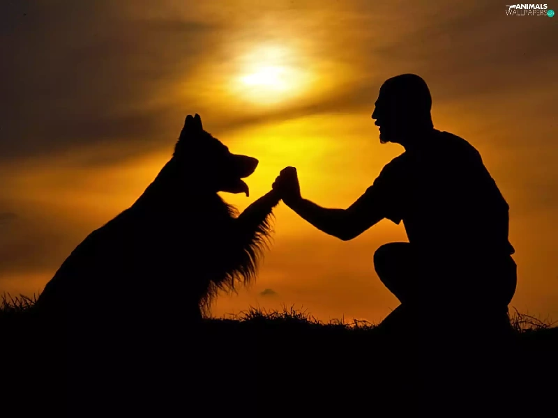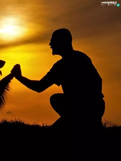 west, dog, a man, sun