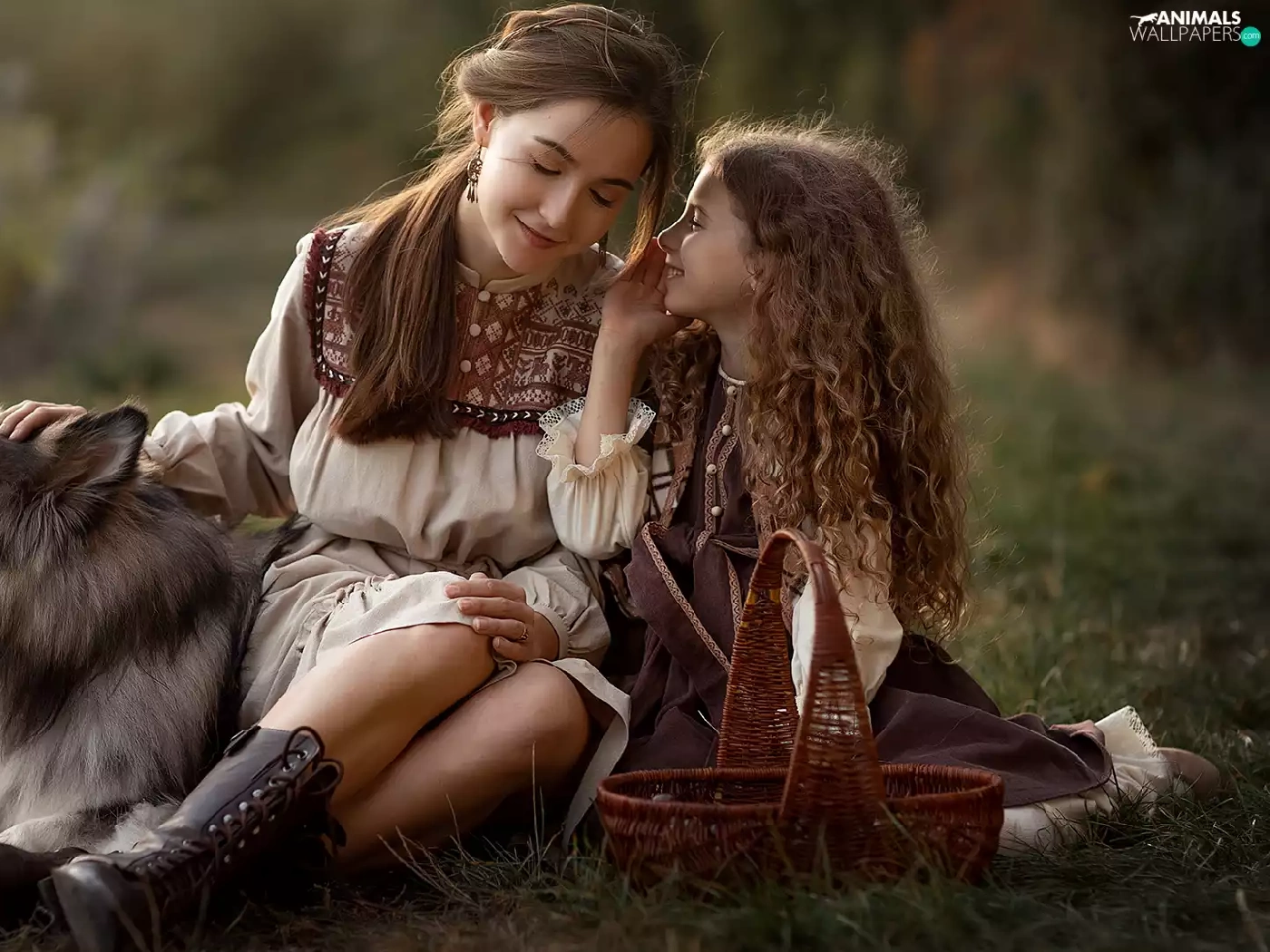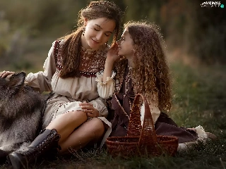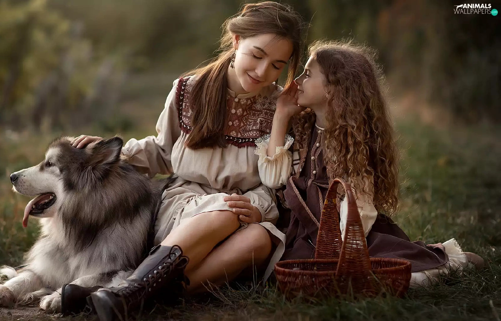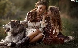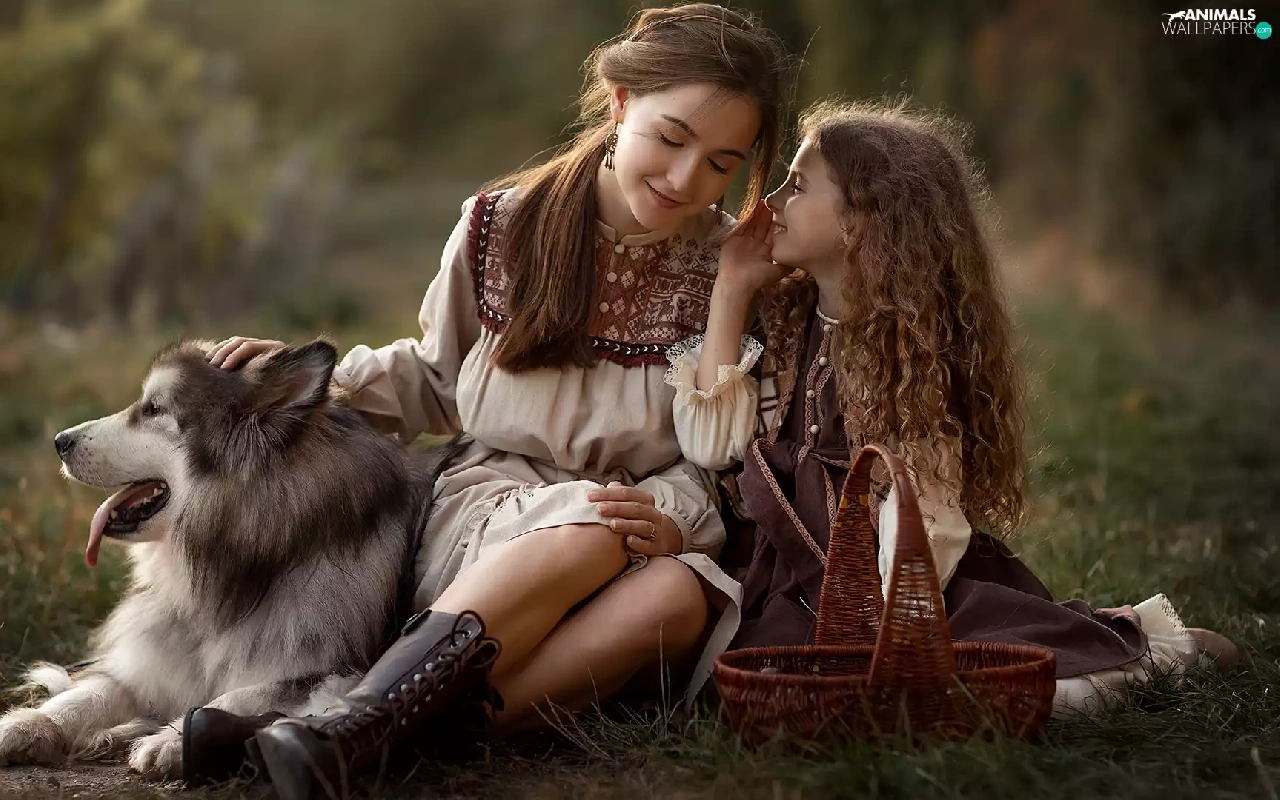 Women, dog, Alaskan Malamute, girl