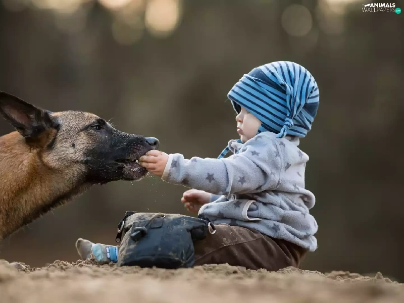 Kid, dog, Belgian Shepherd Malinois