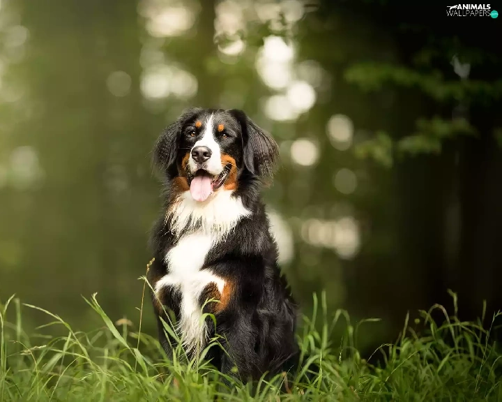 grass, dog, Bernese Mountain Dog