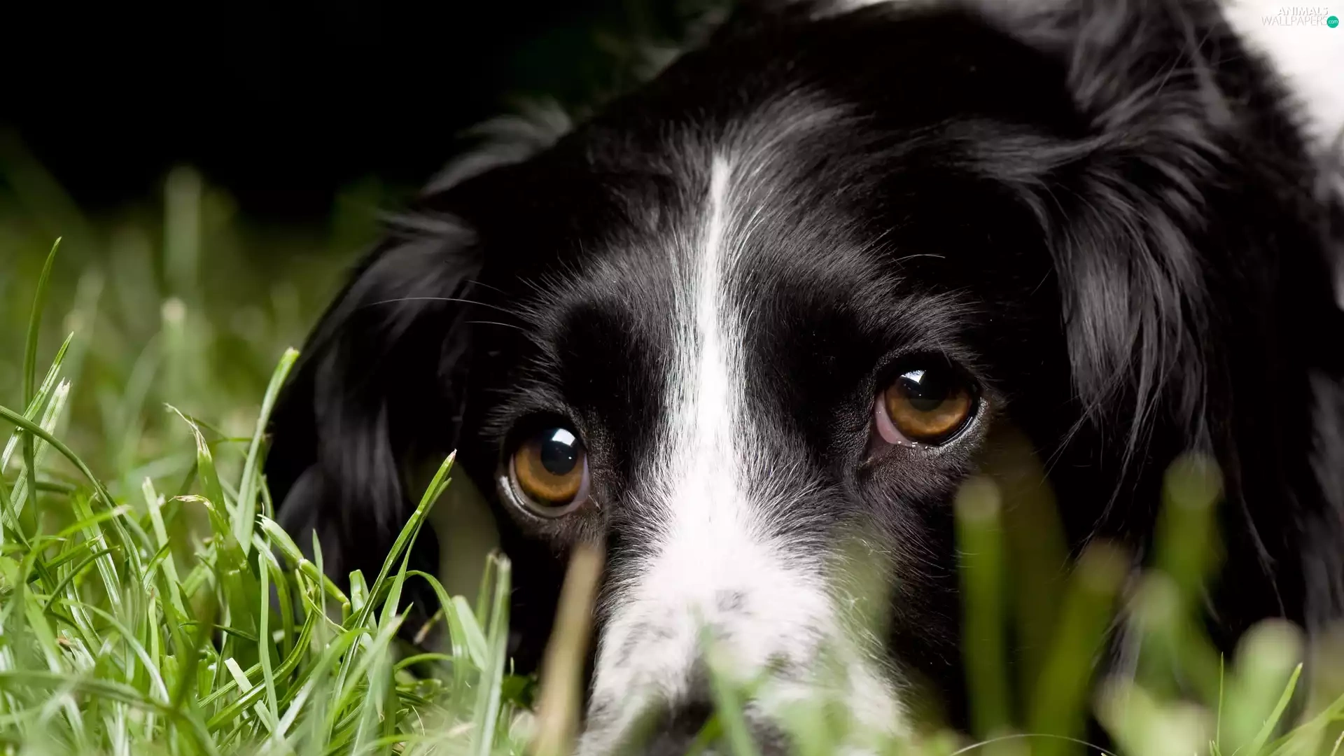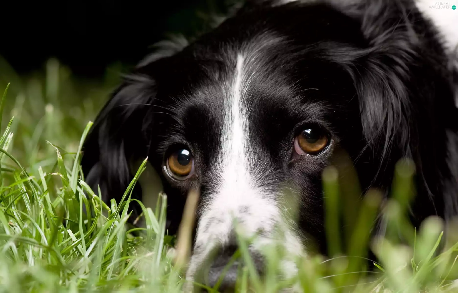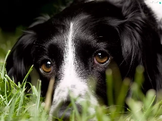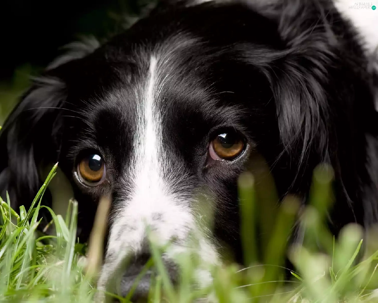 head, dog, black, White, grass