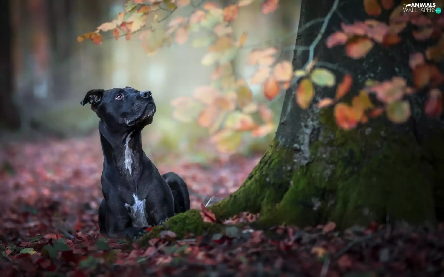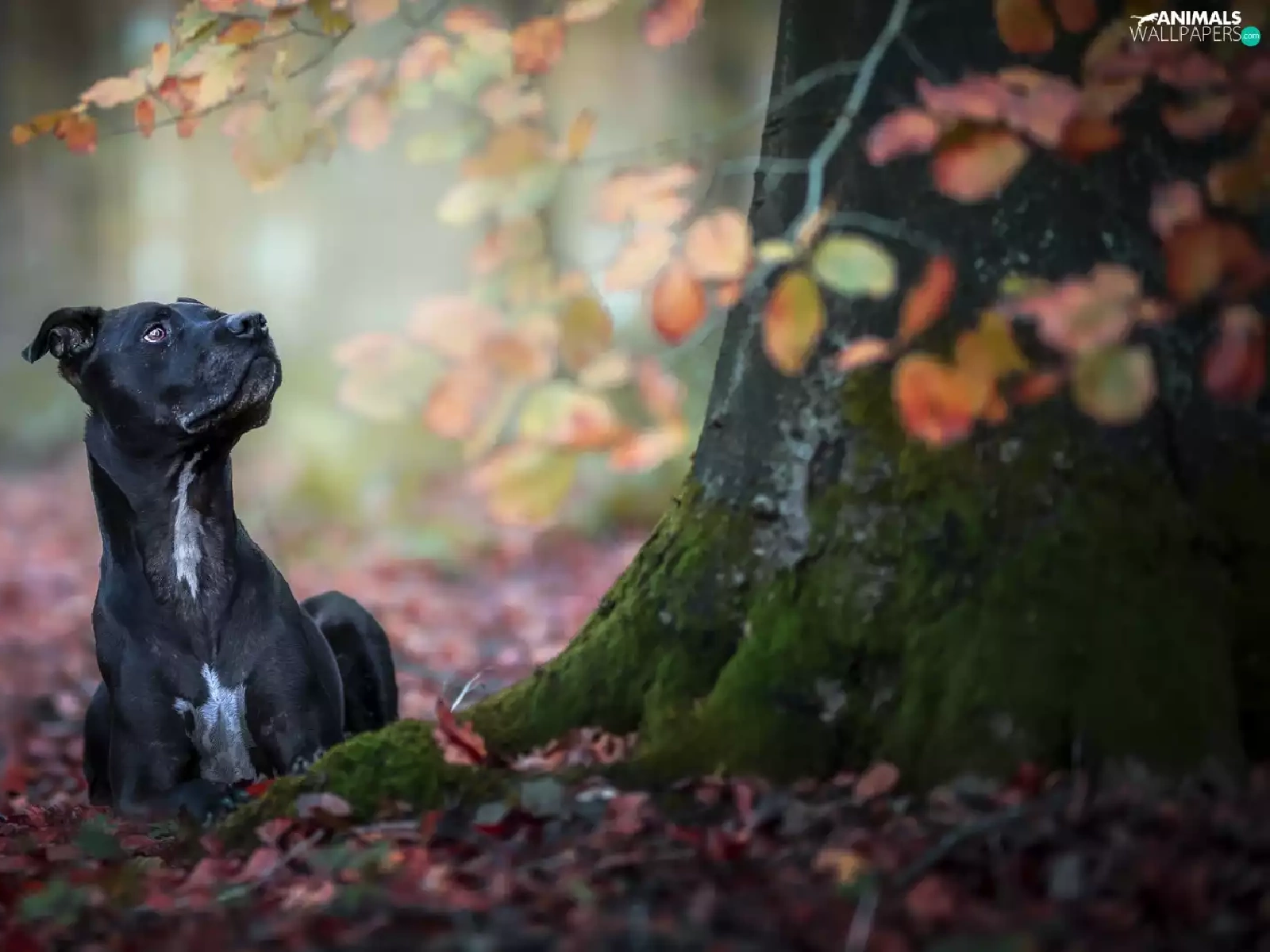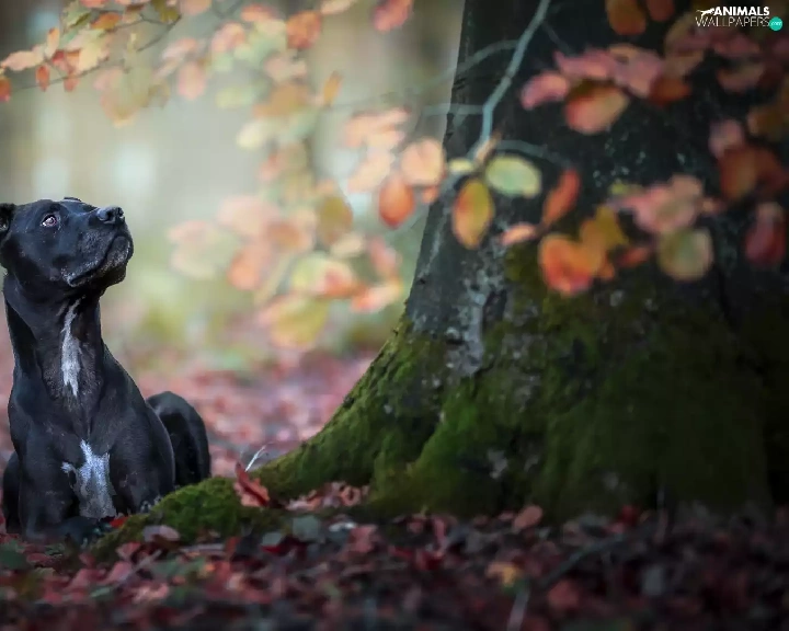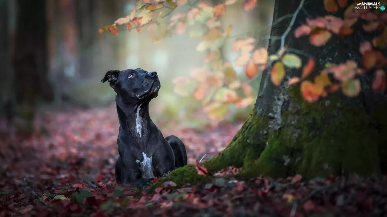 Black, trees, Leaf, dog