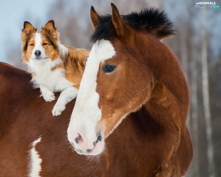 Border Collie, Horse, dog