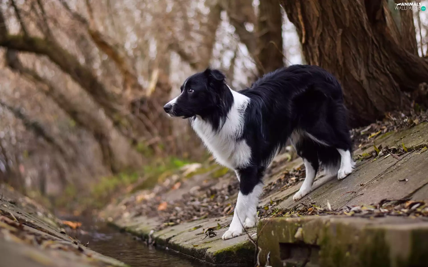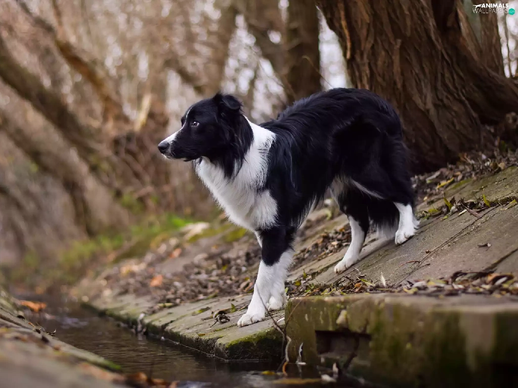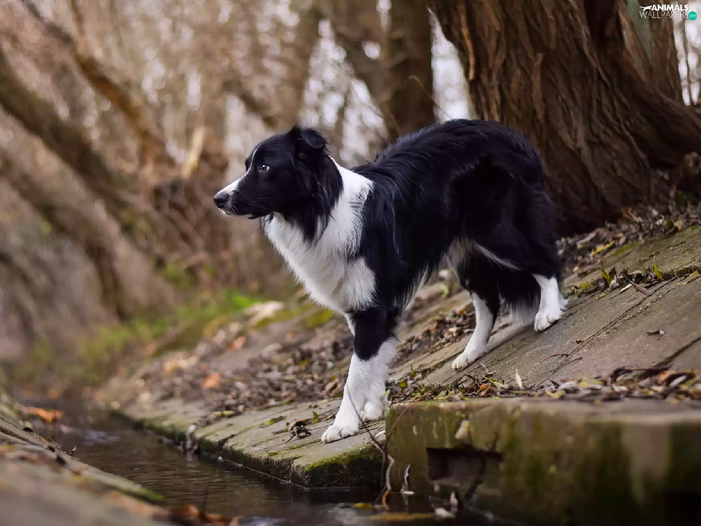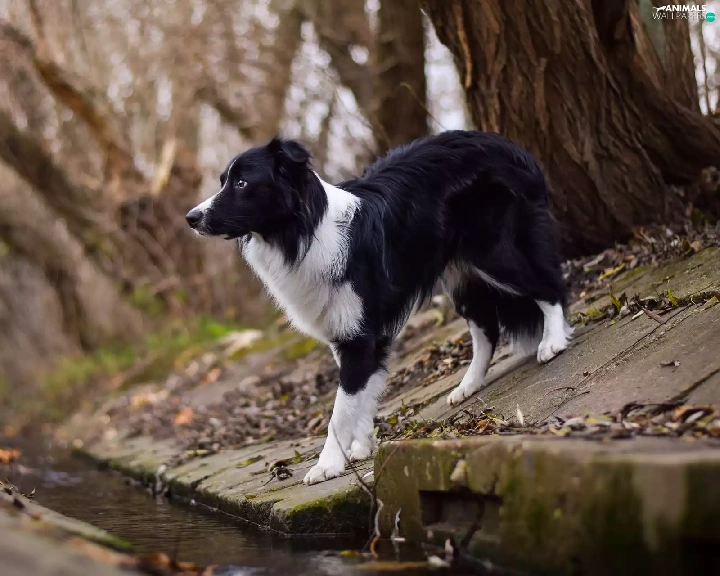 channel, dog, Border Collie, stream