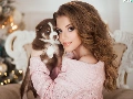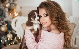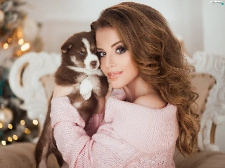 Puppy, Women, christmas tree, christmas, Siberian Husky, dog