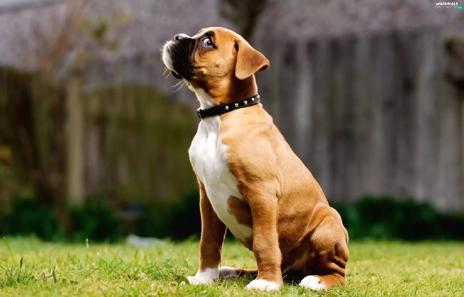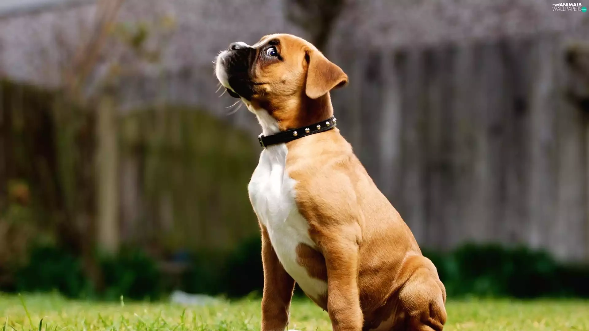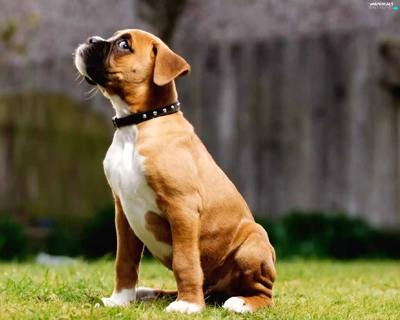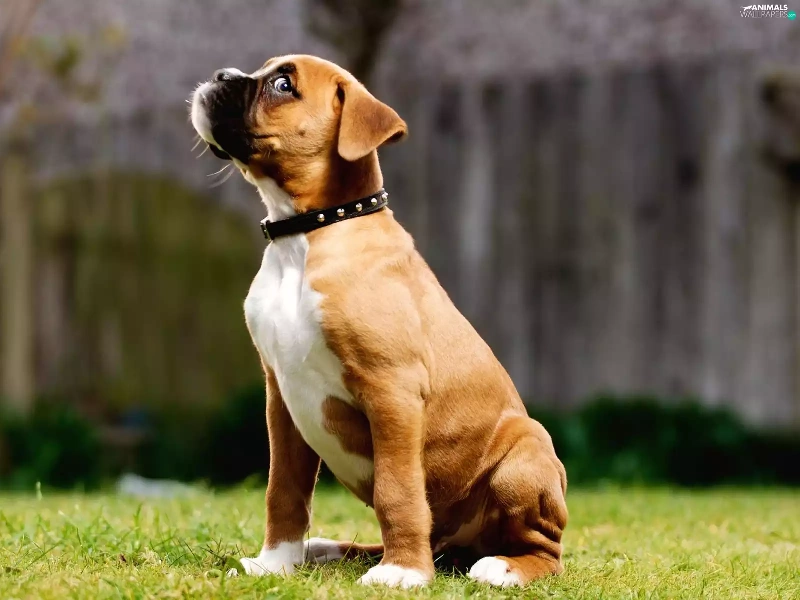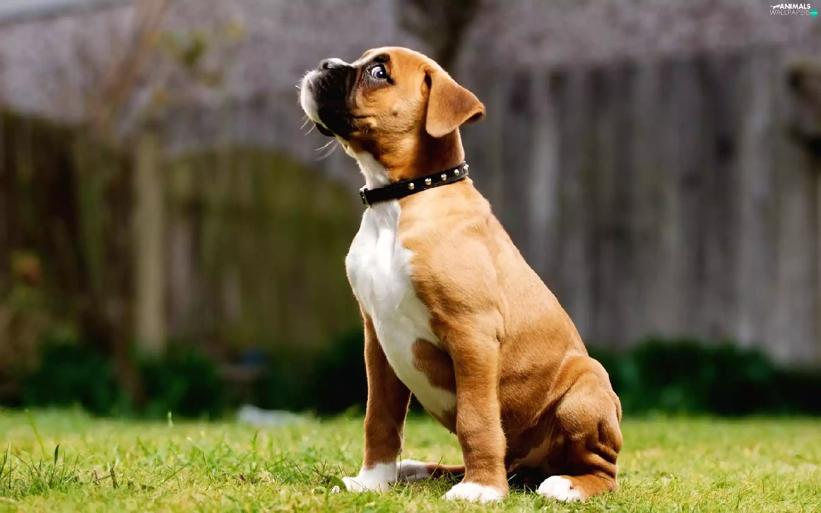 small, dog-collar, grass, boxer