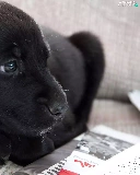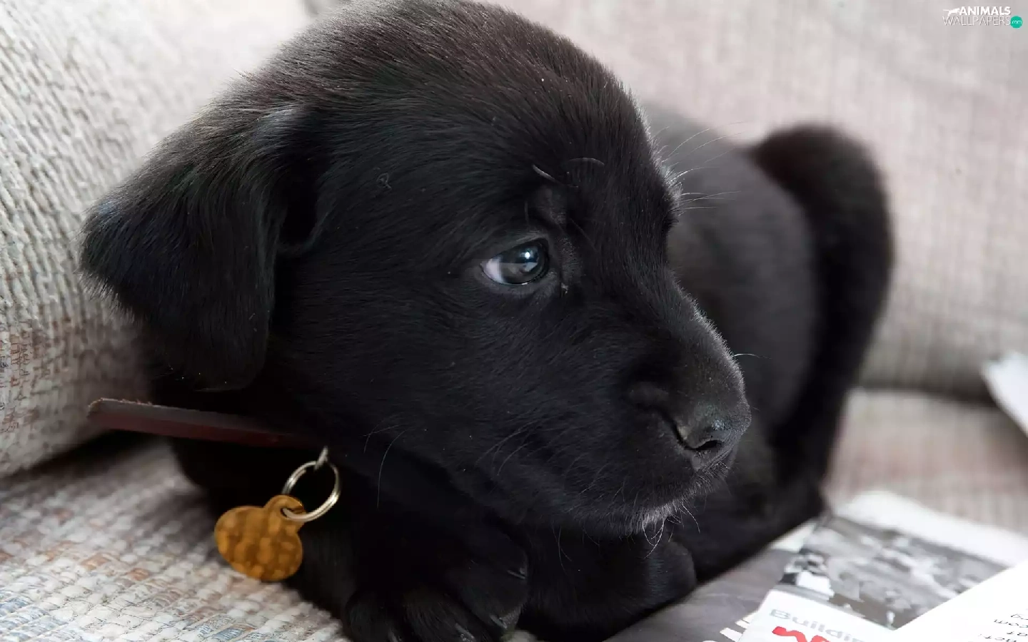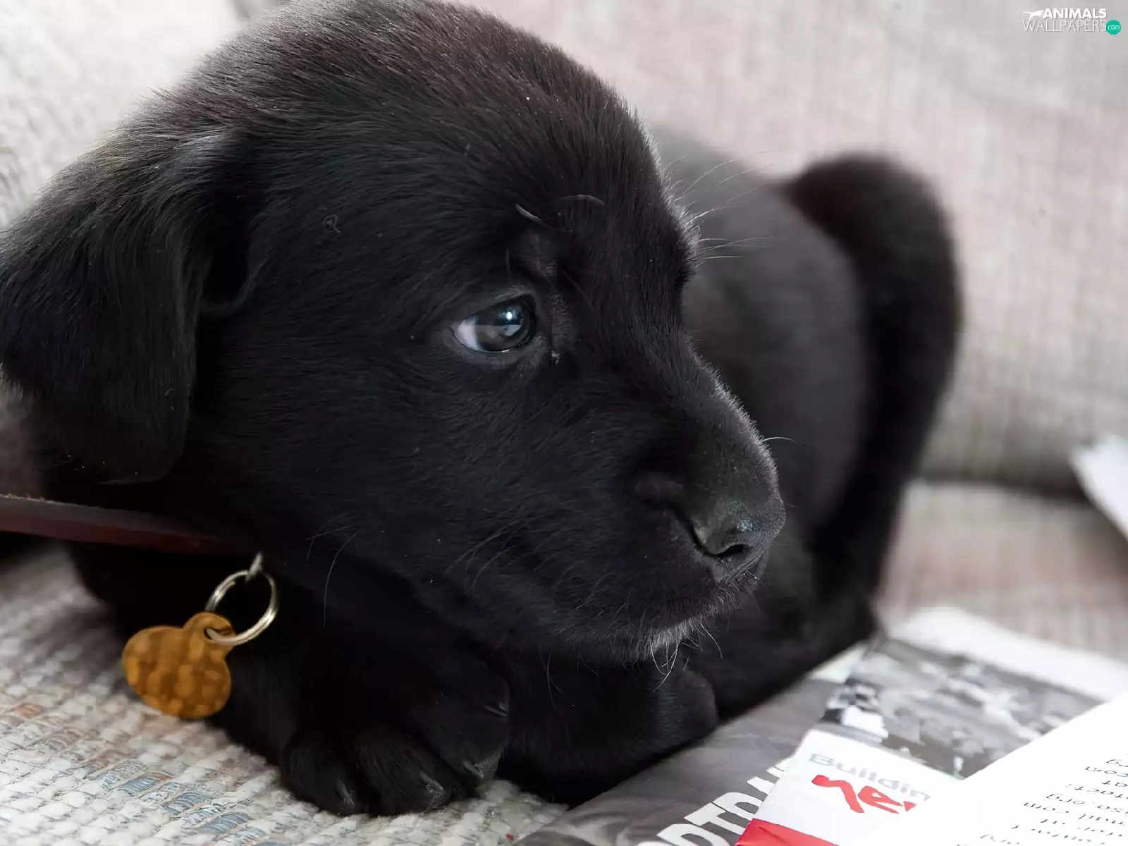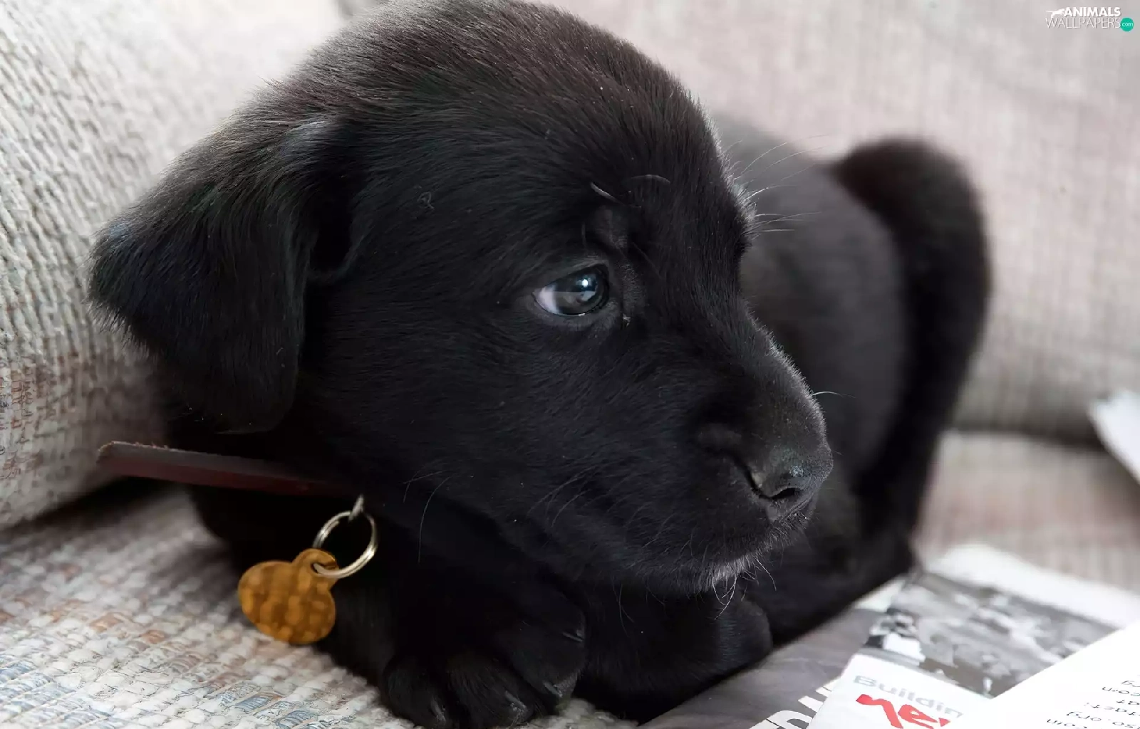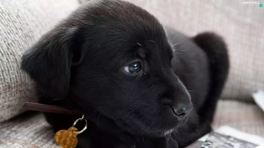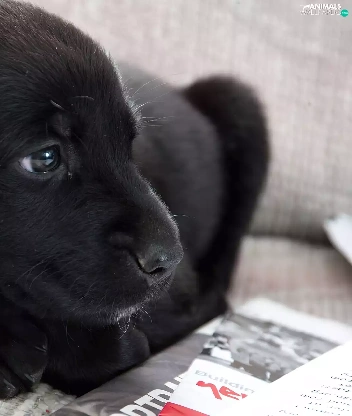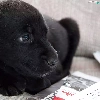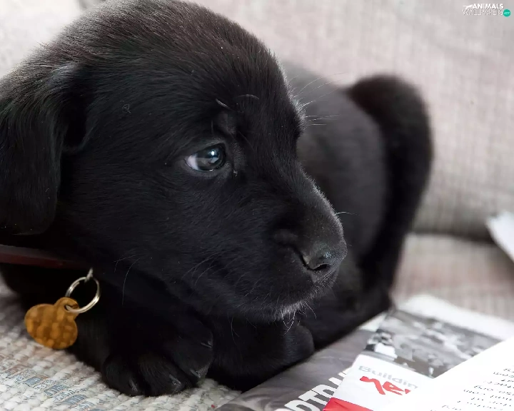 Black, dog-collar, newspapers, dog