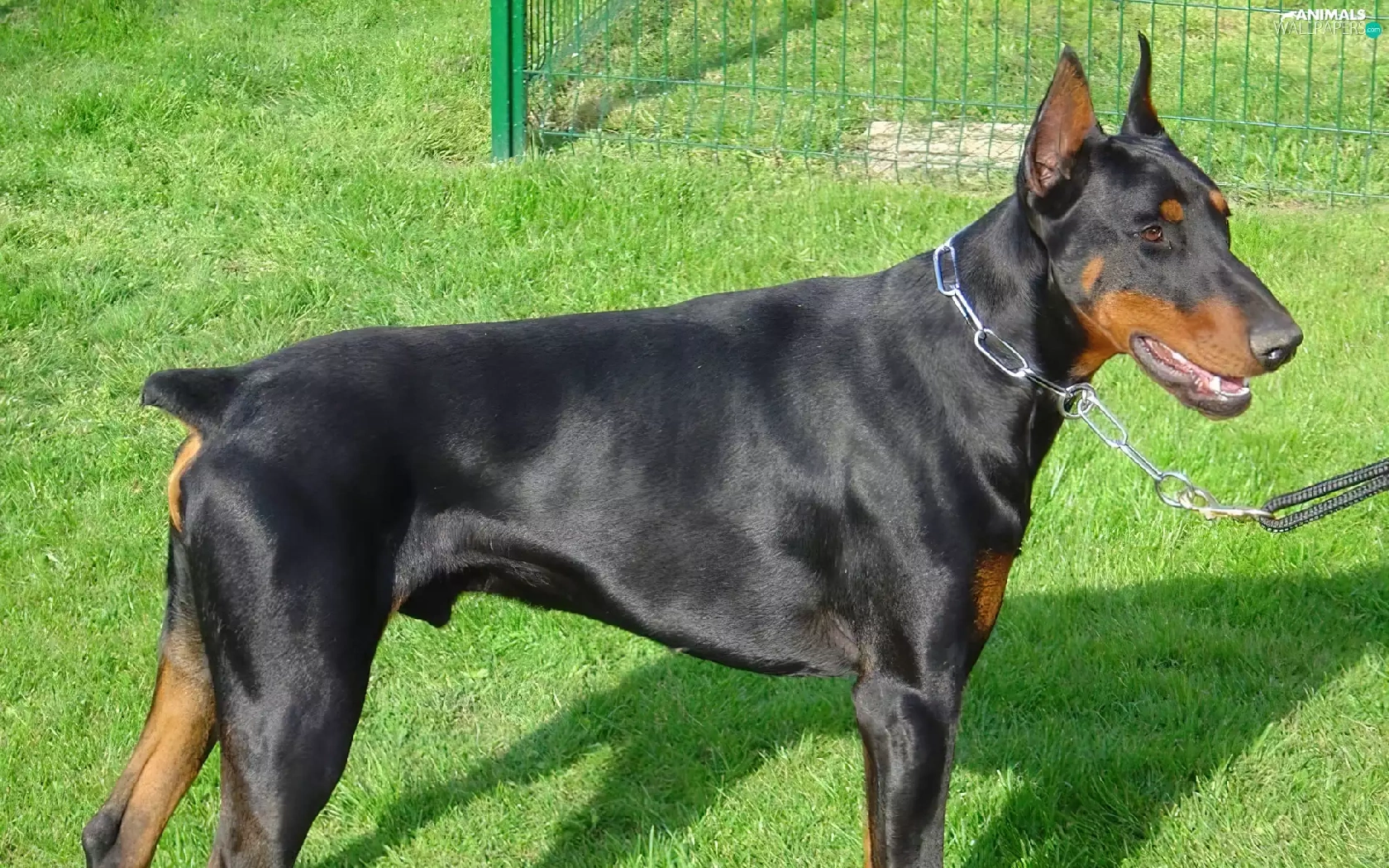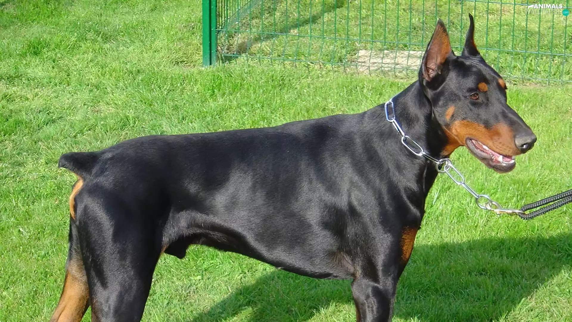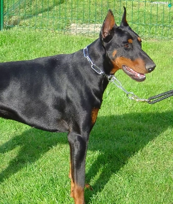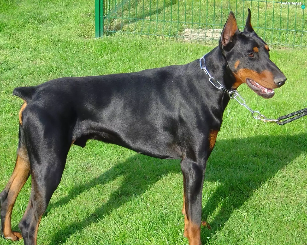 Doberman, dog-collar, Leash, grass