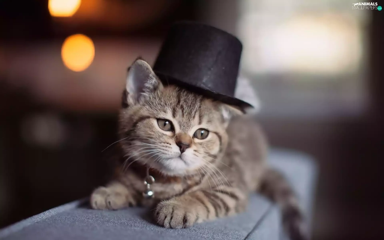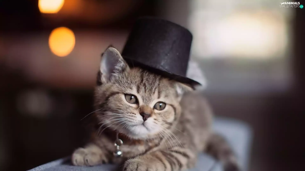 small, dog-collar, hat, kitten