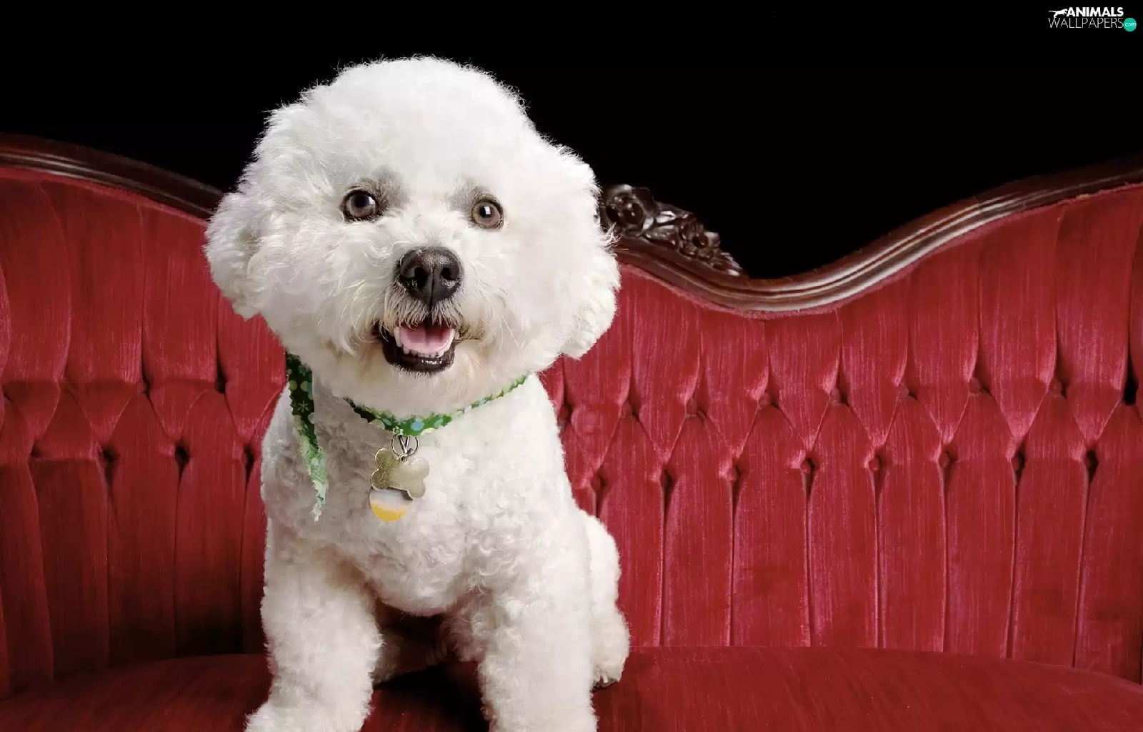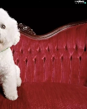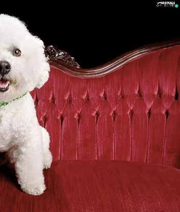 White, dog-collar, sofa, poodle