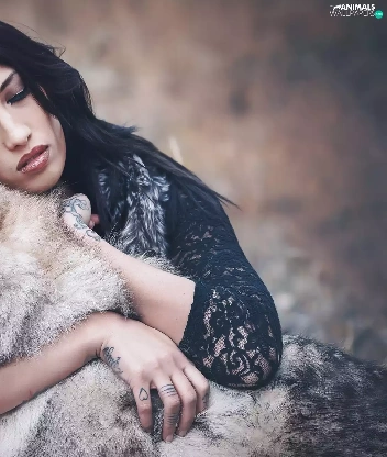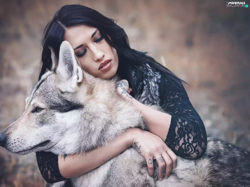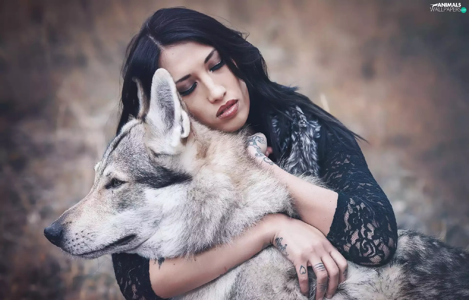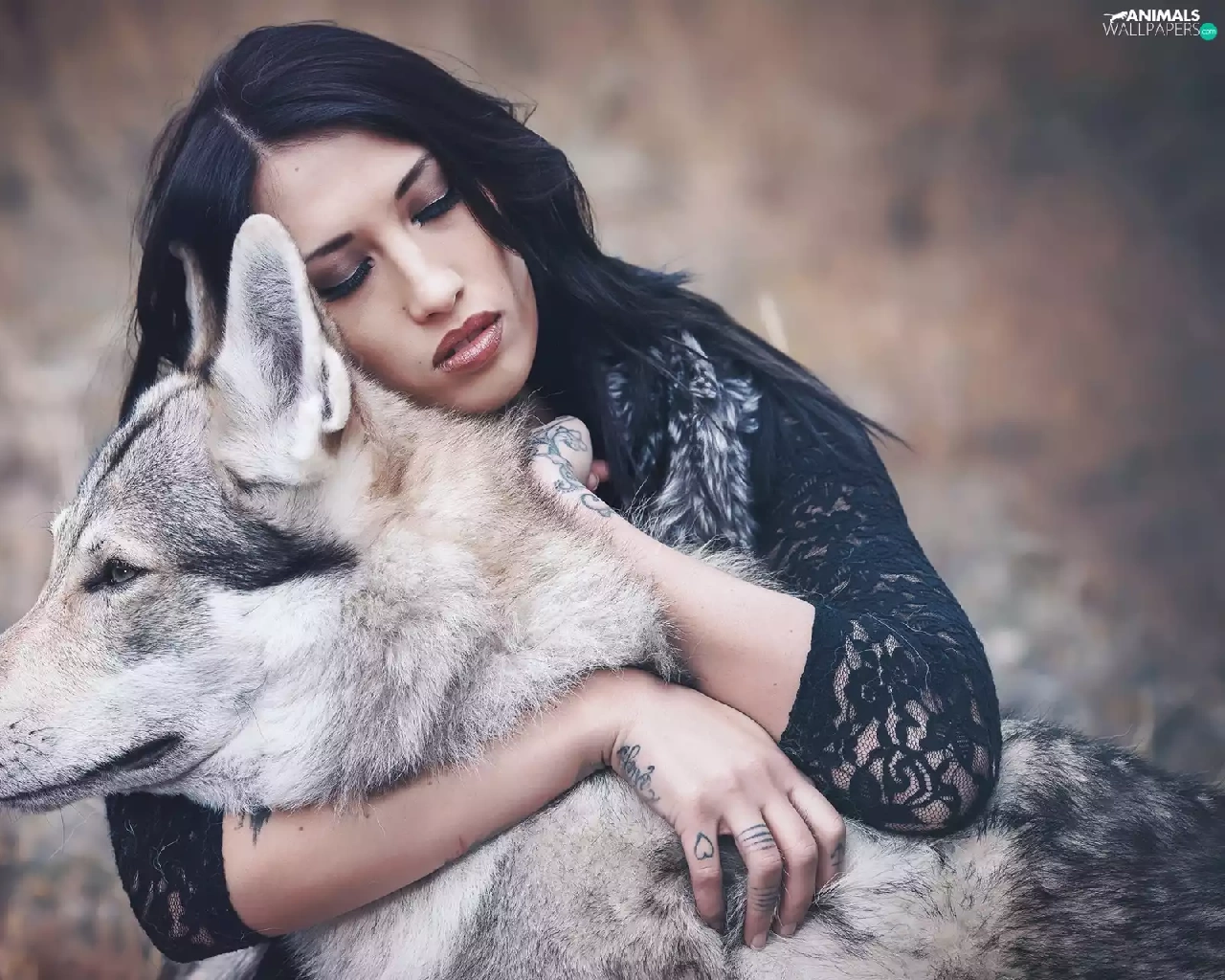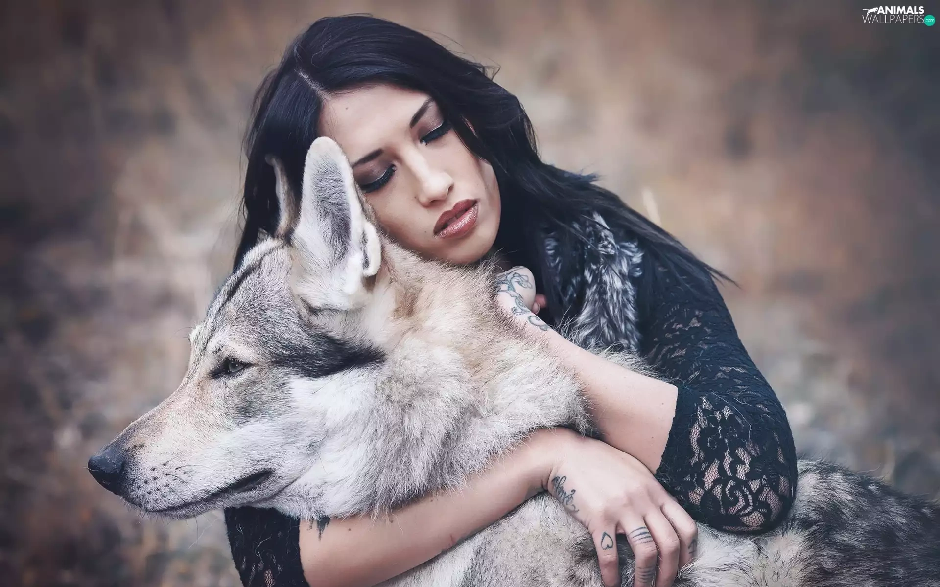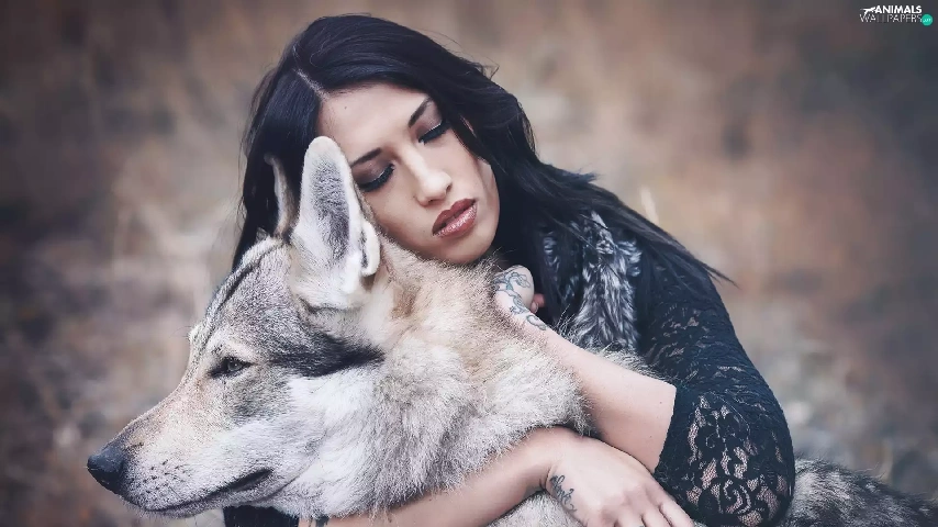 Women, dog, Czechoslovakian Wolfdog, brunette