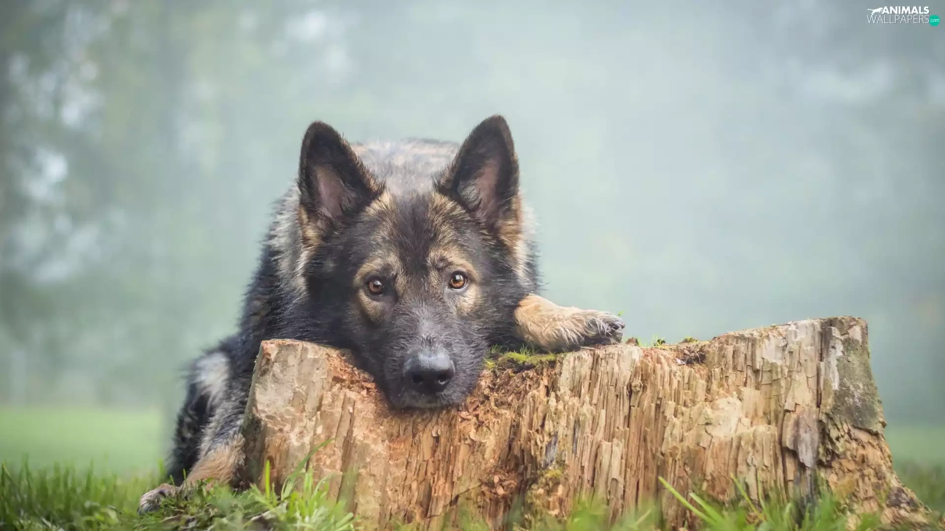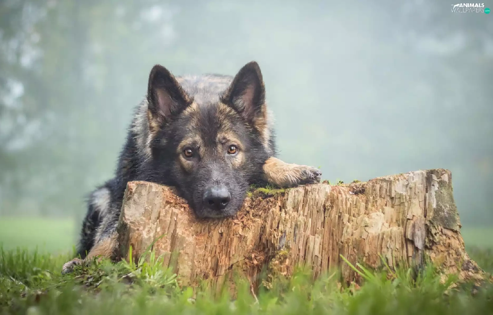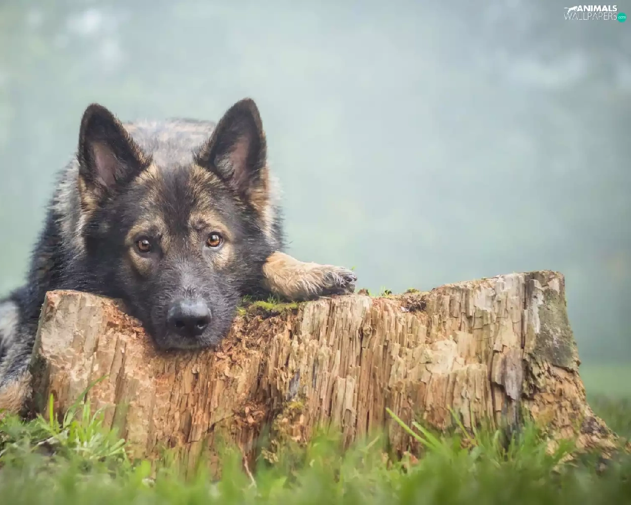 trees, viewes, sheep-dog, trunk, dog