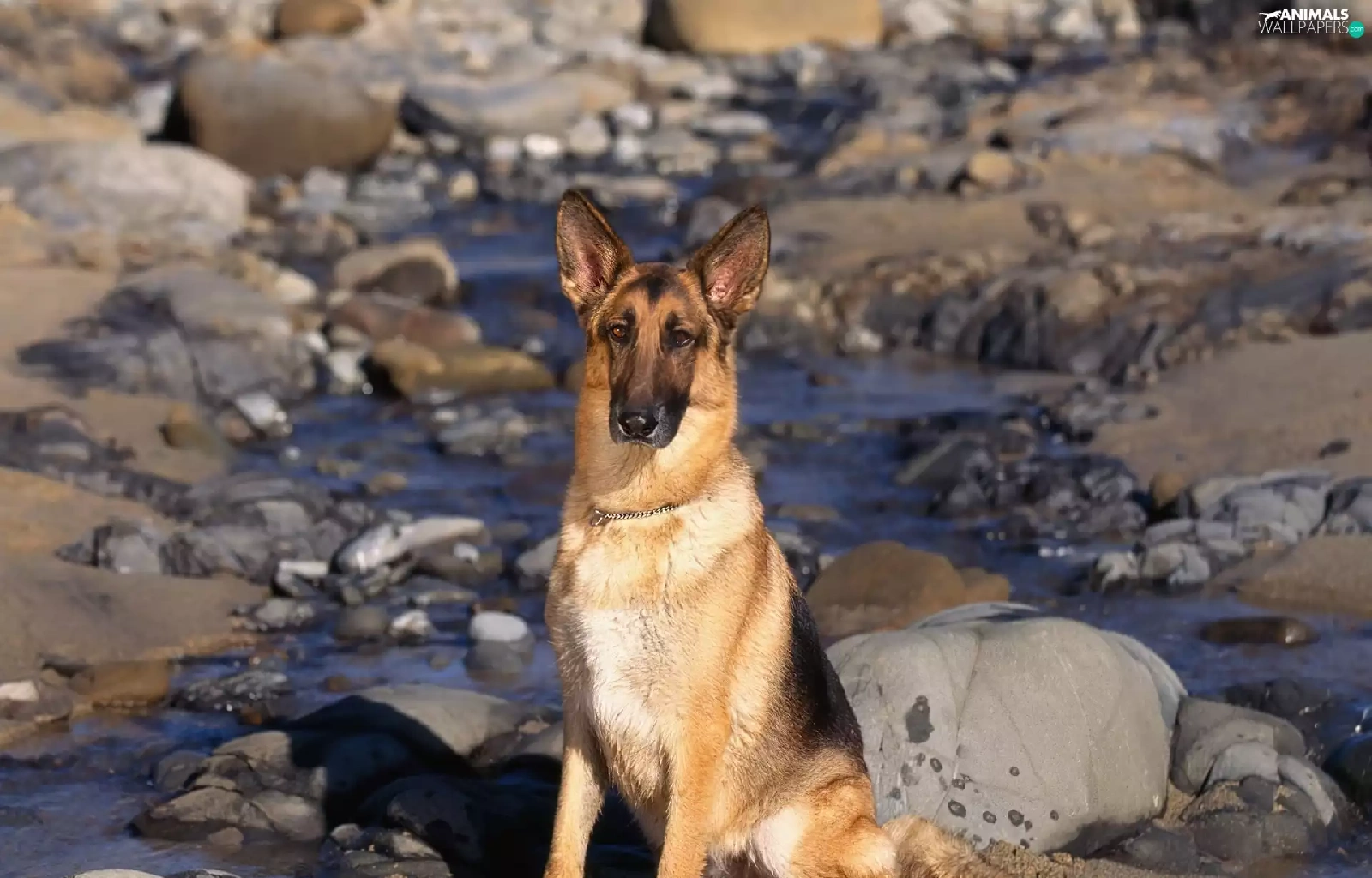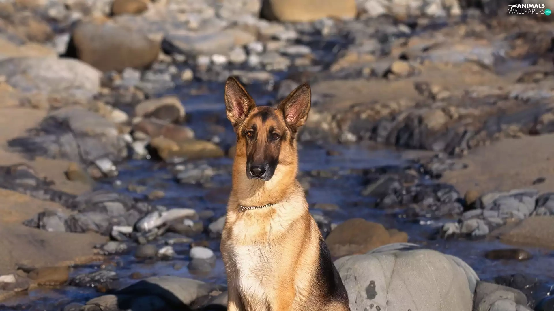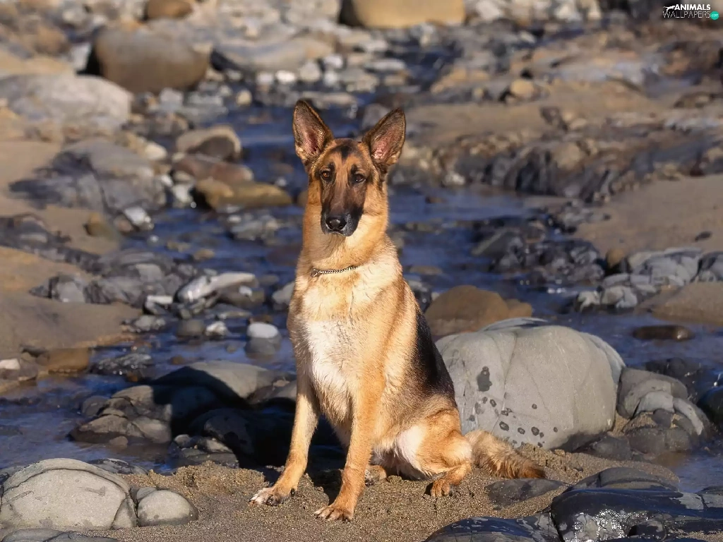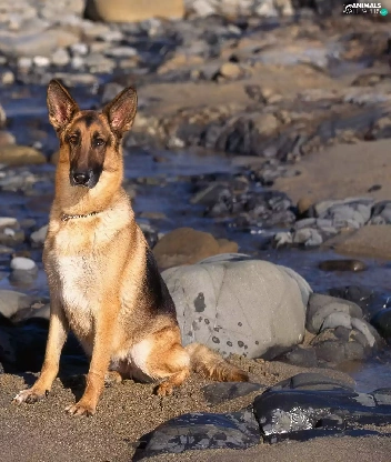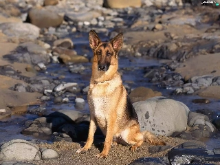 water, Stones, sheep-dog, german, dog
