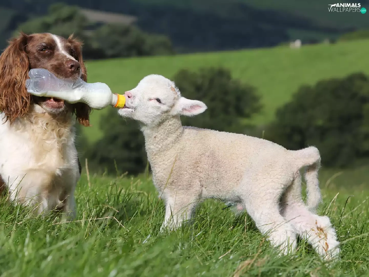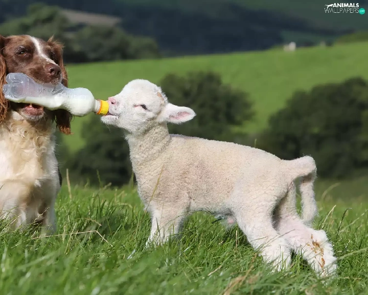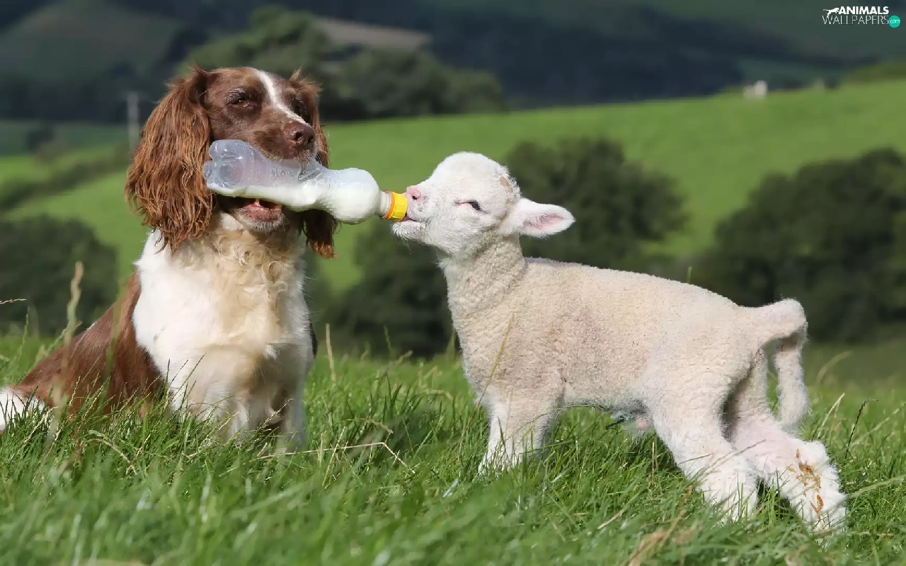 sheep, dog, English Springer Spaniel