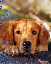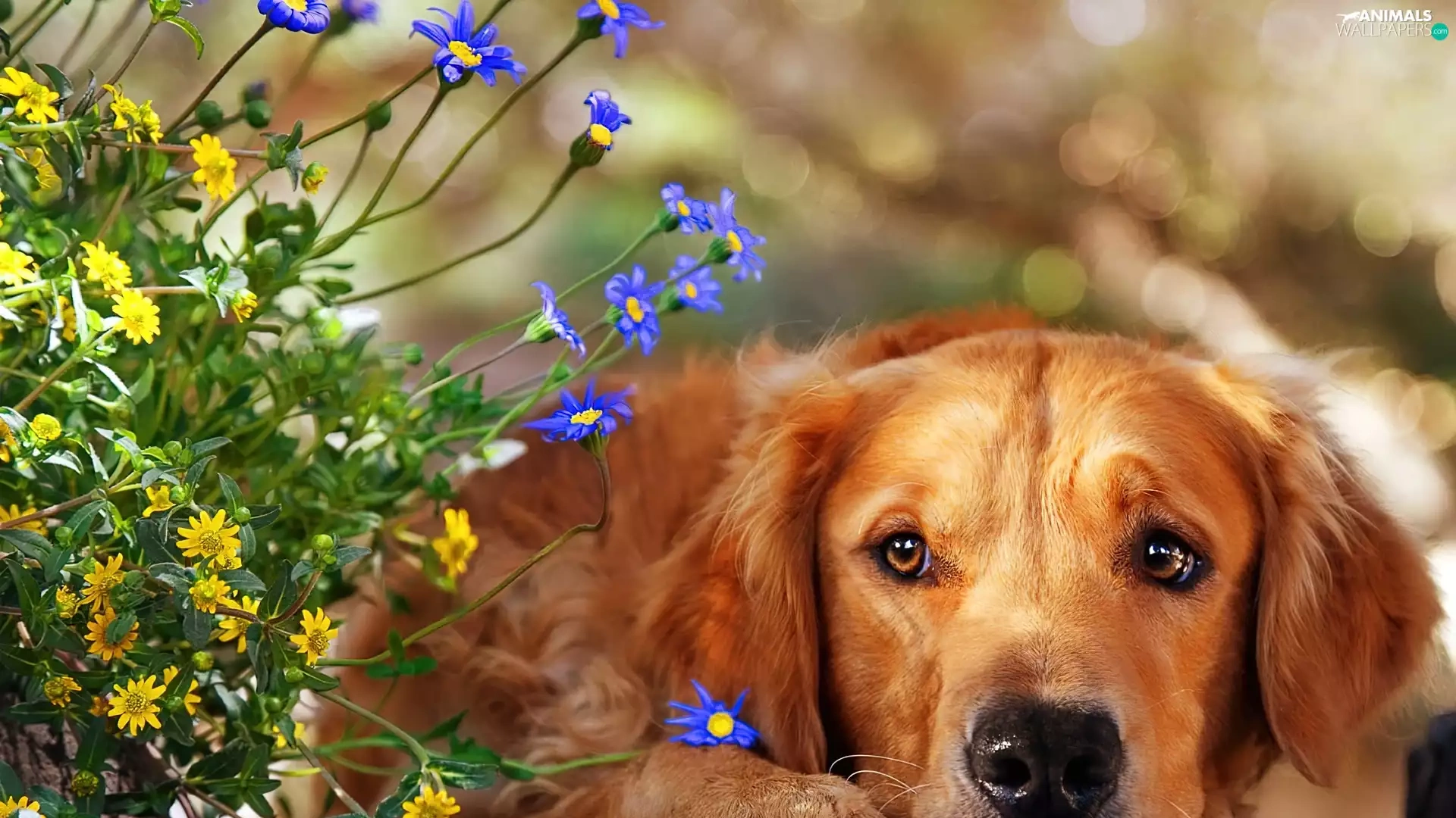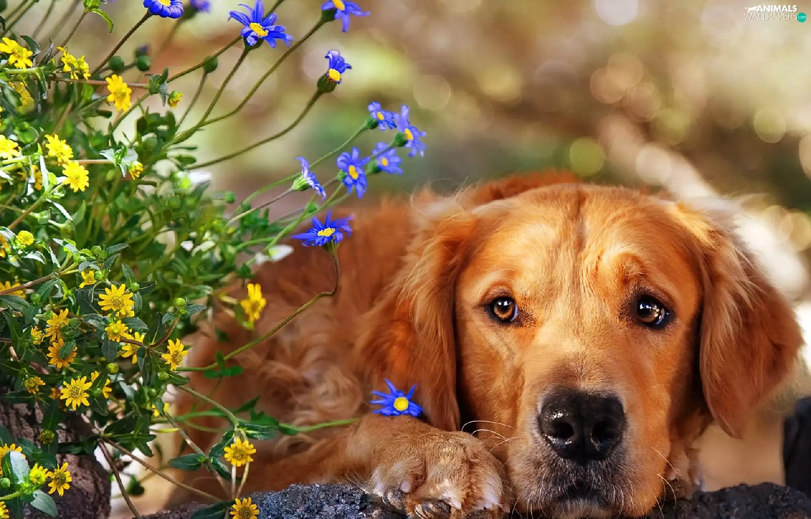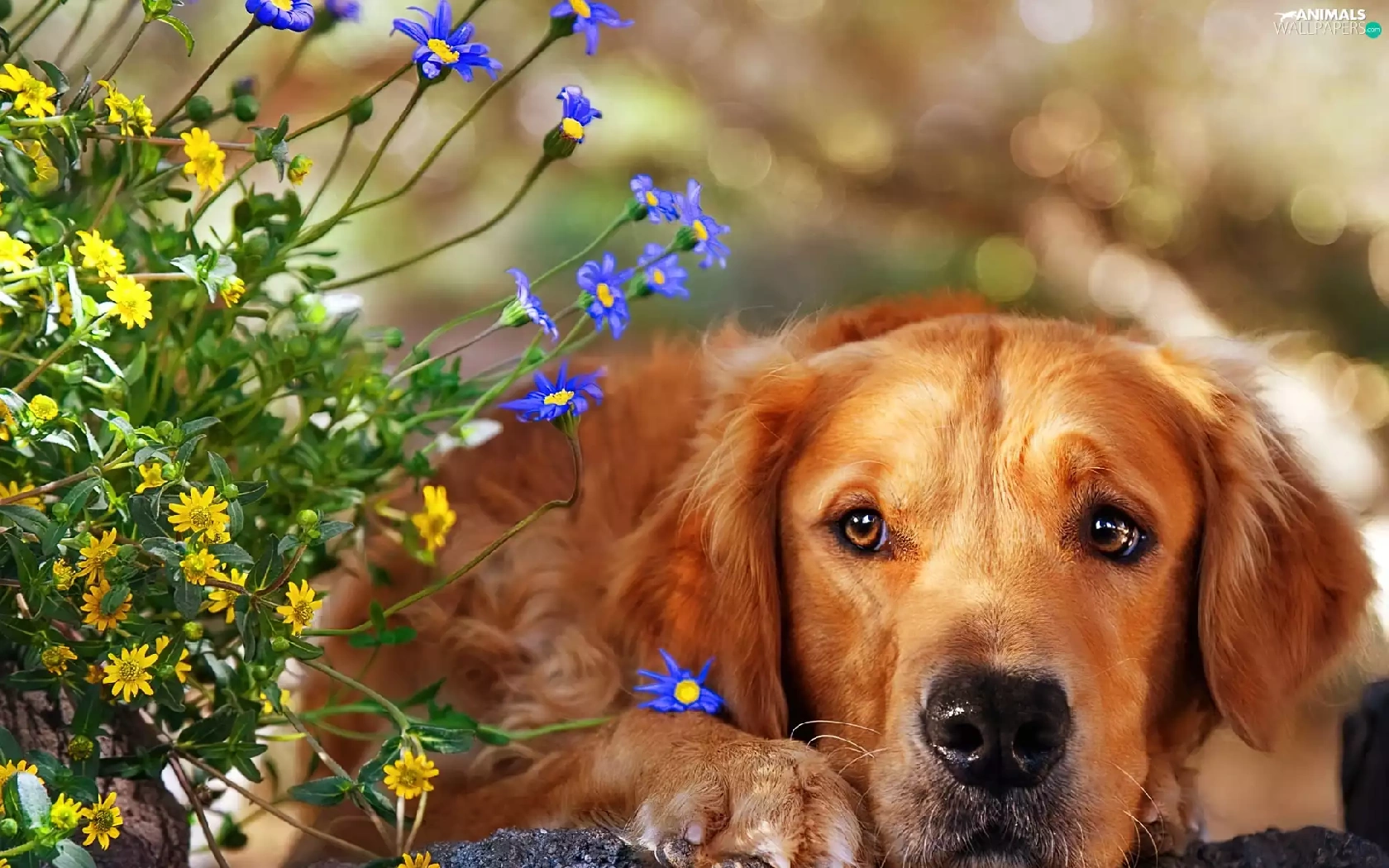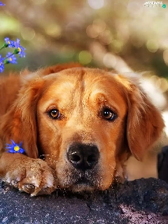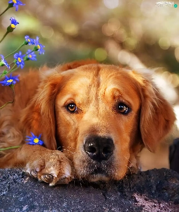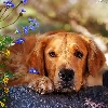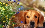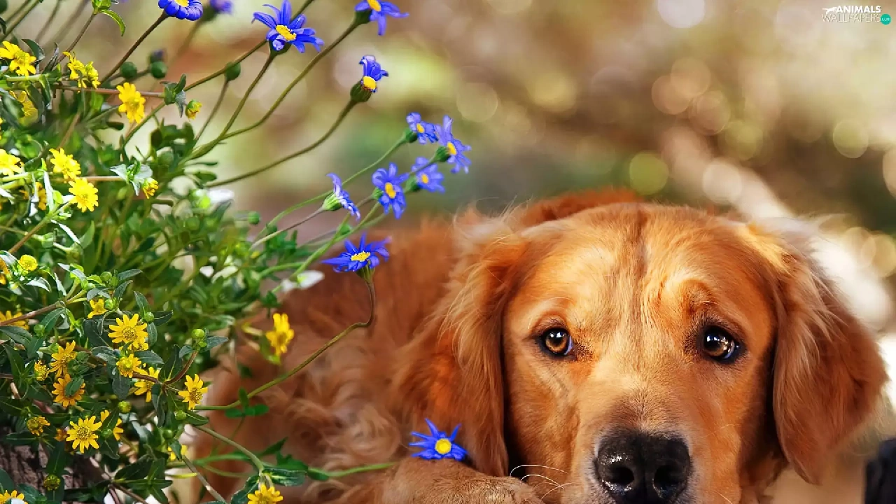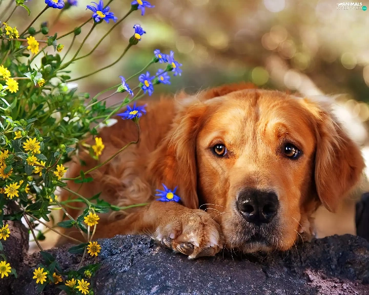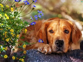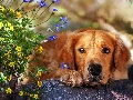 dog, Flowers