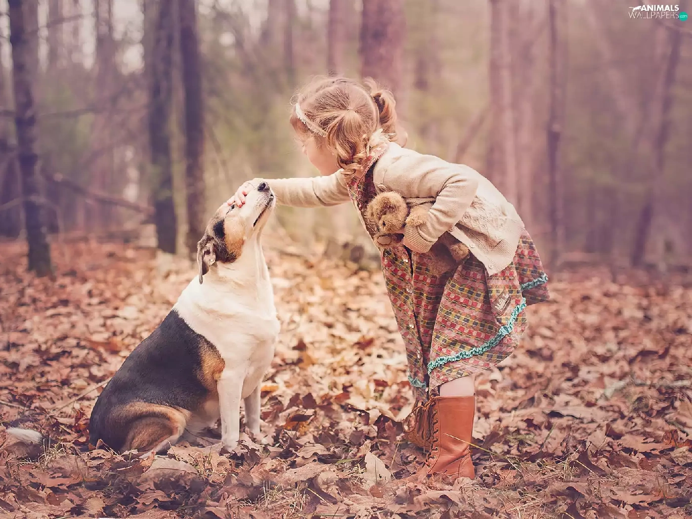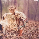 girl, Park, Leaf, dog