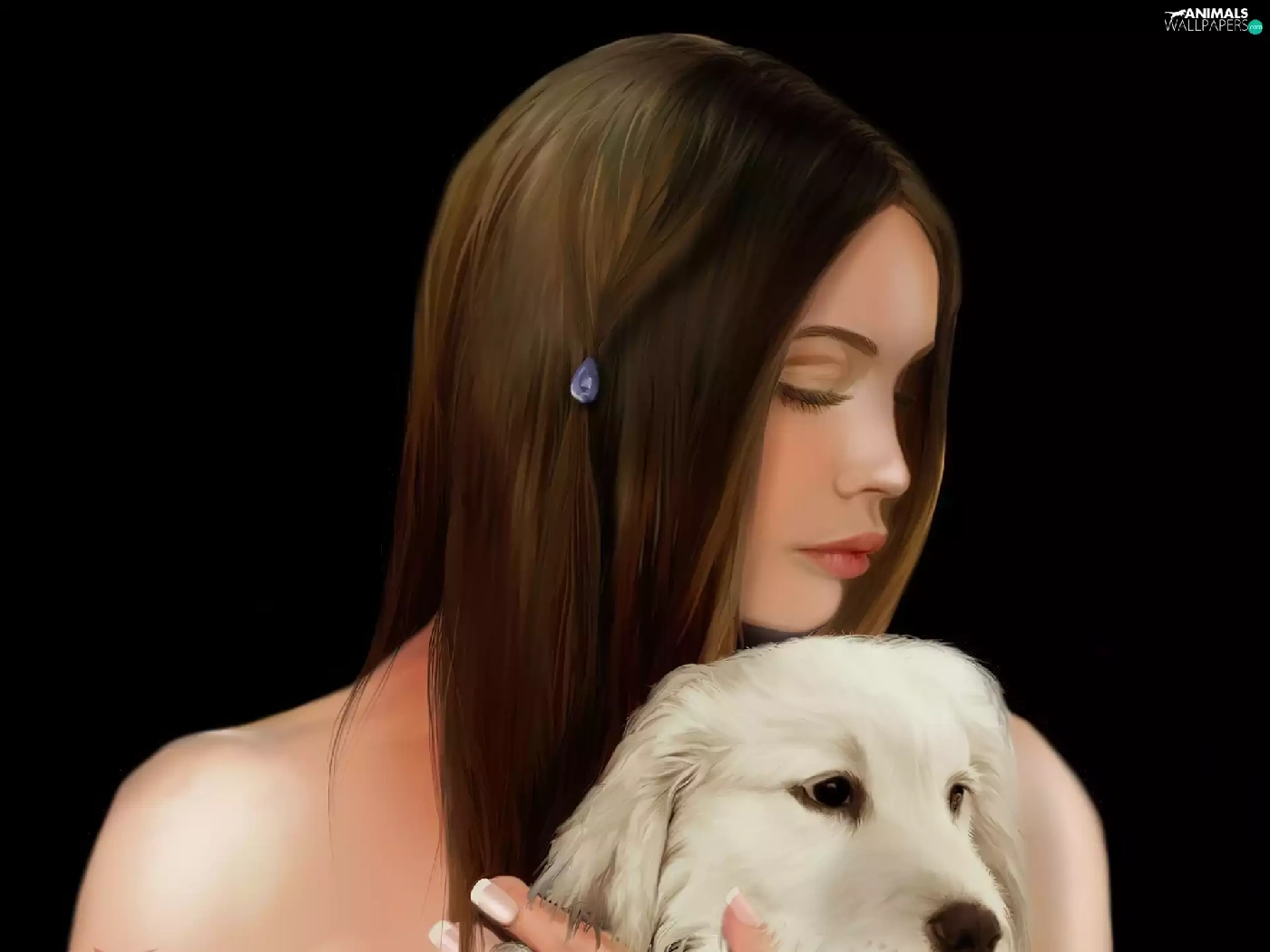 dog, sad, girl