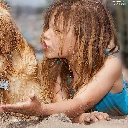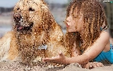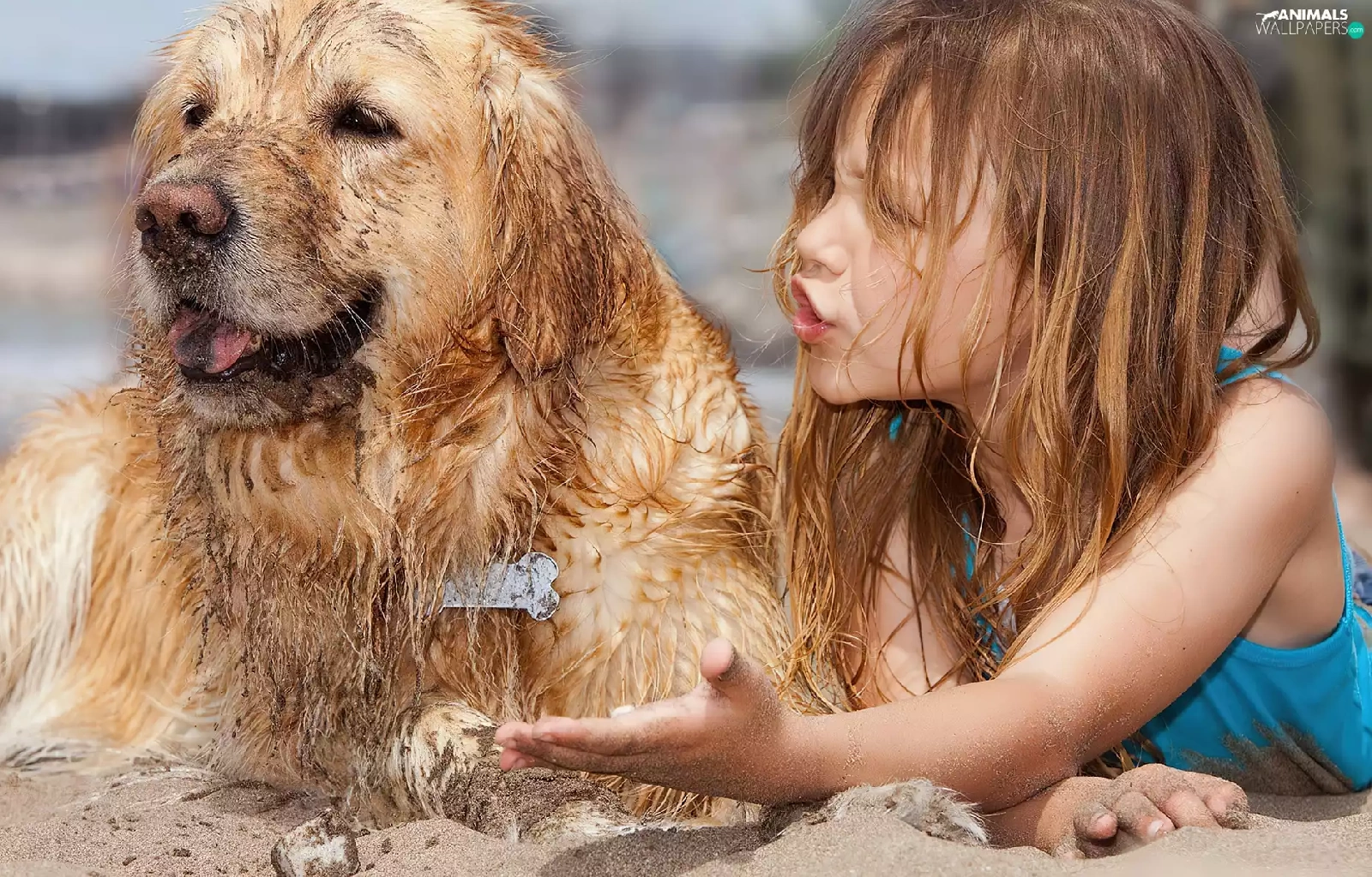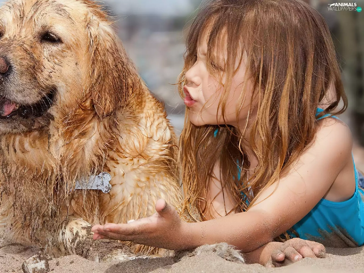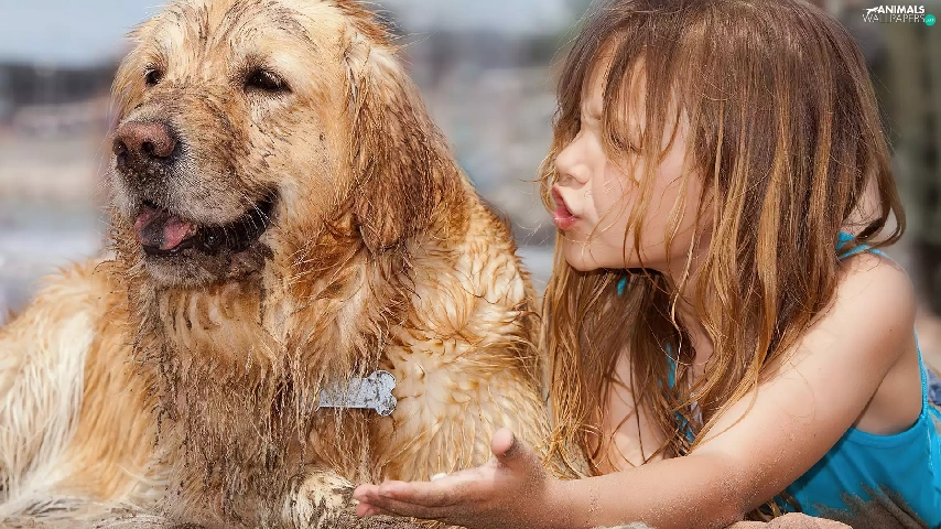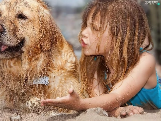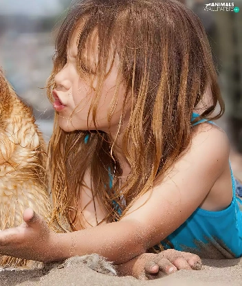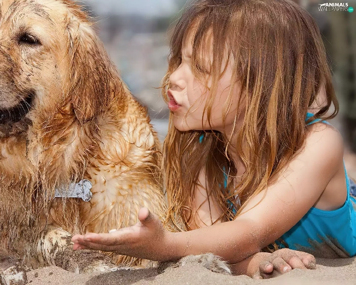 girl, Beaches, Sand, dog