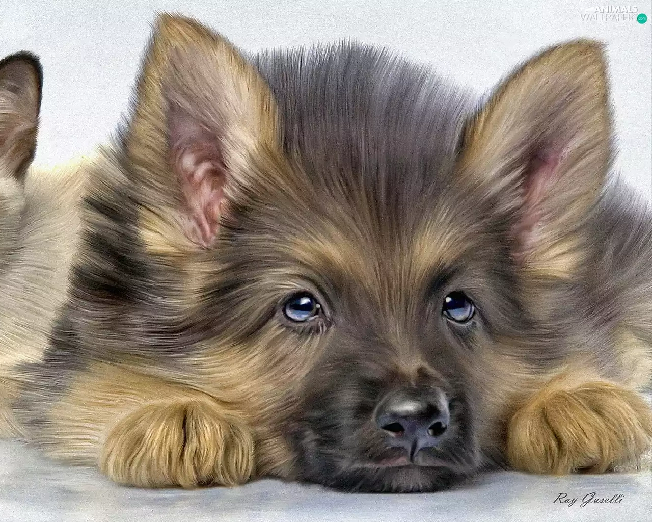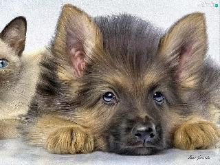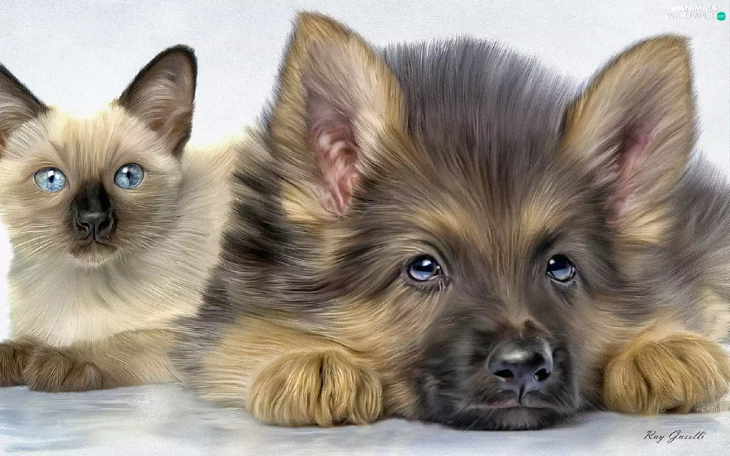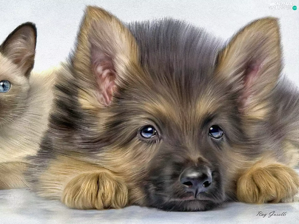 German Shepherd, graphics, dog, Puppy, Siamese Cat