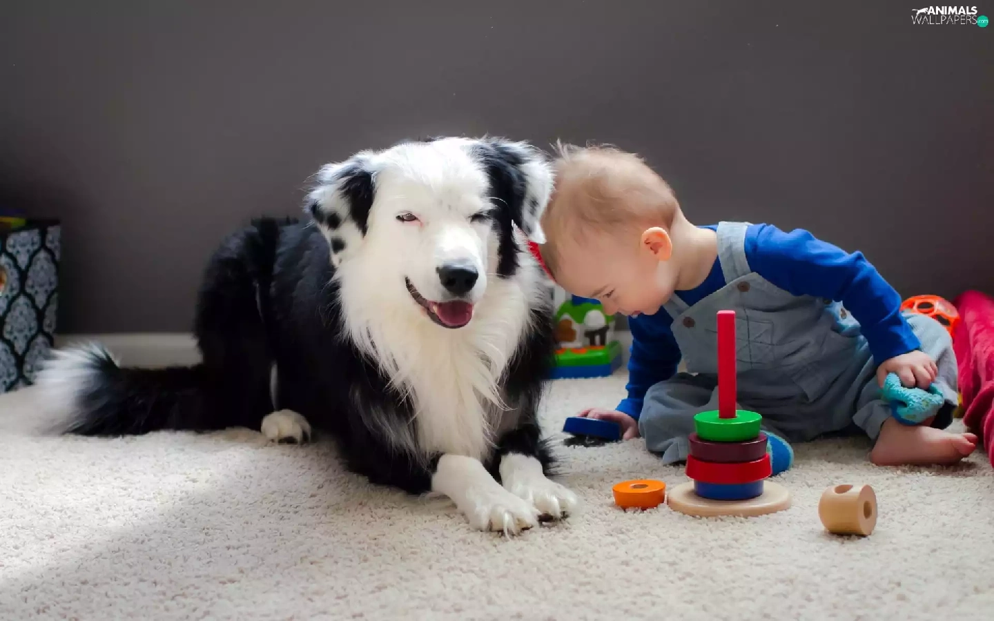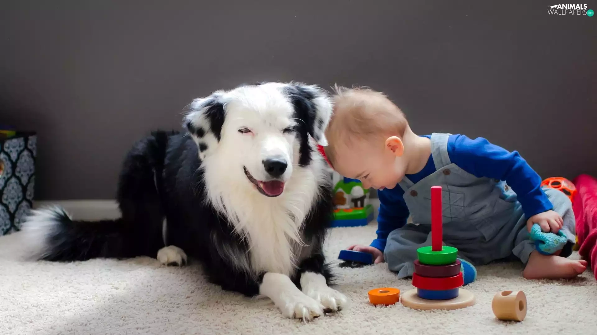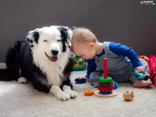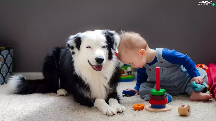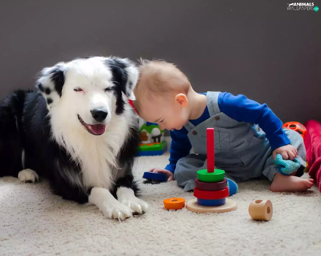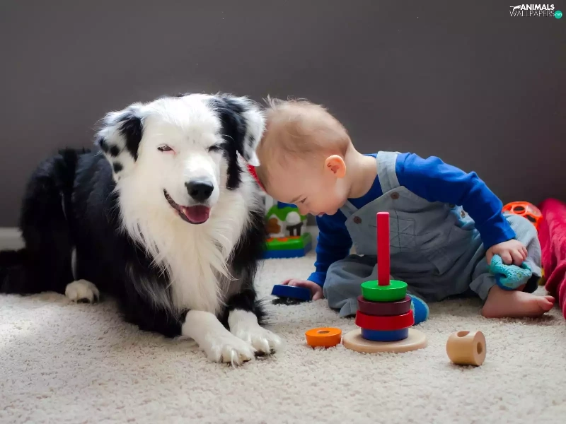 Kid, toys, friends, dog