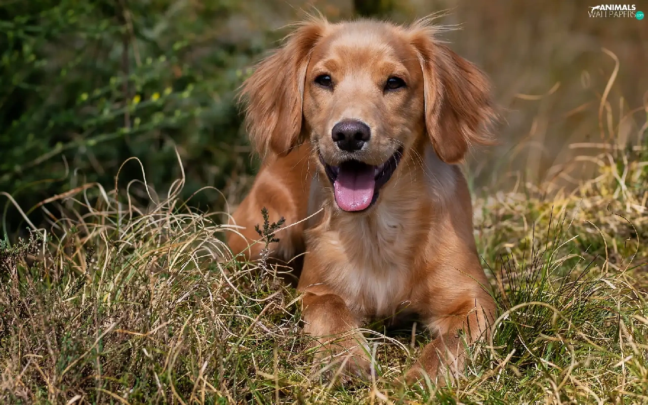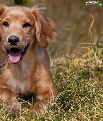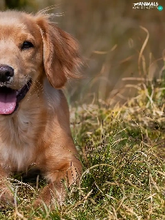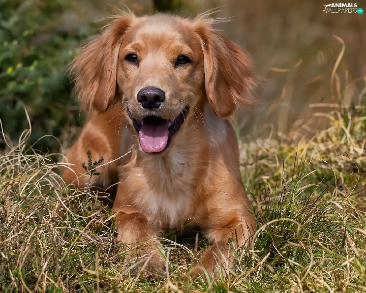 lying, Puppy, grass, dog
