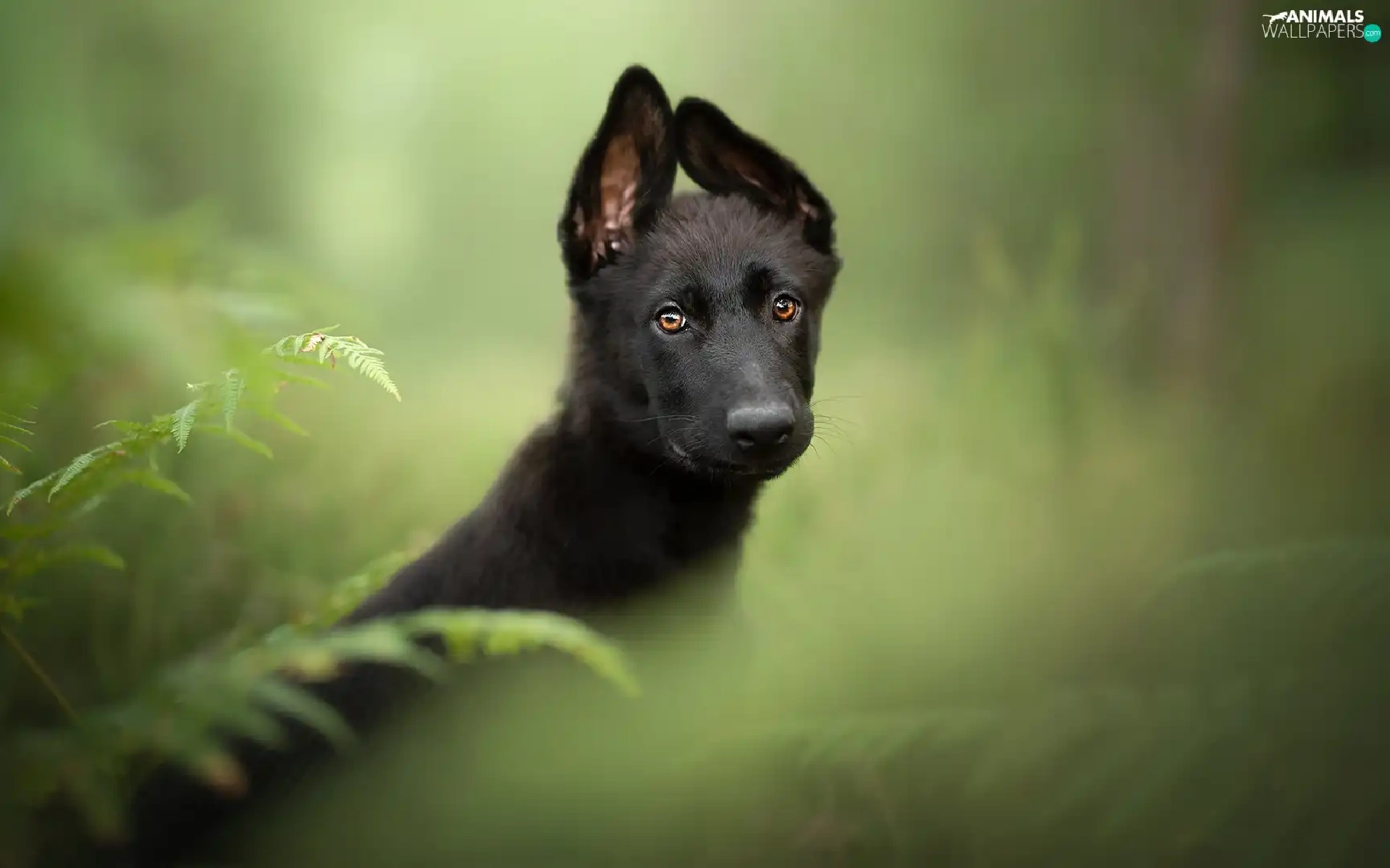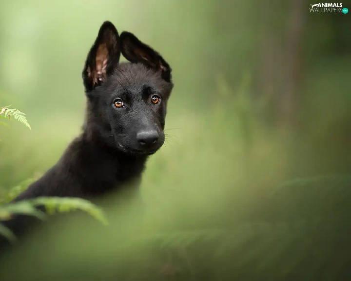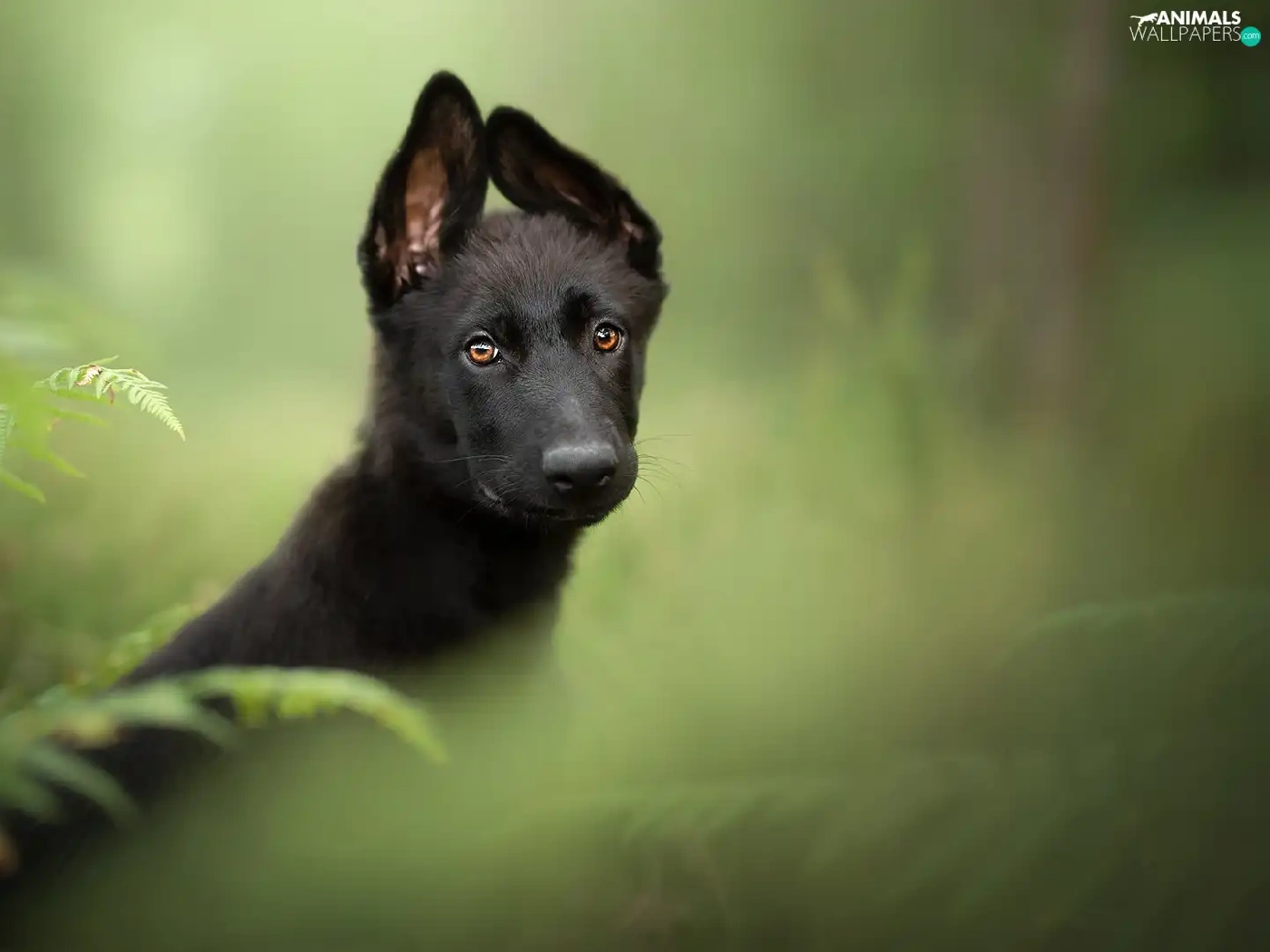 Leaf, Fern, Puppy, Black German Shepherd Dog, dog