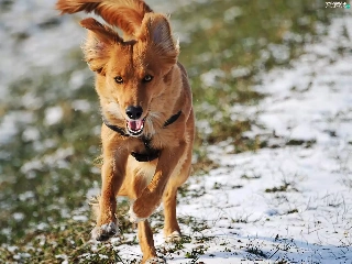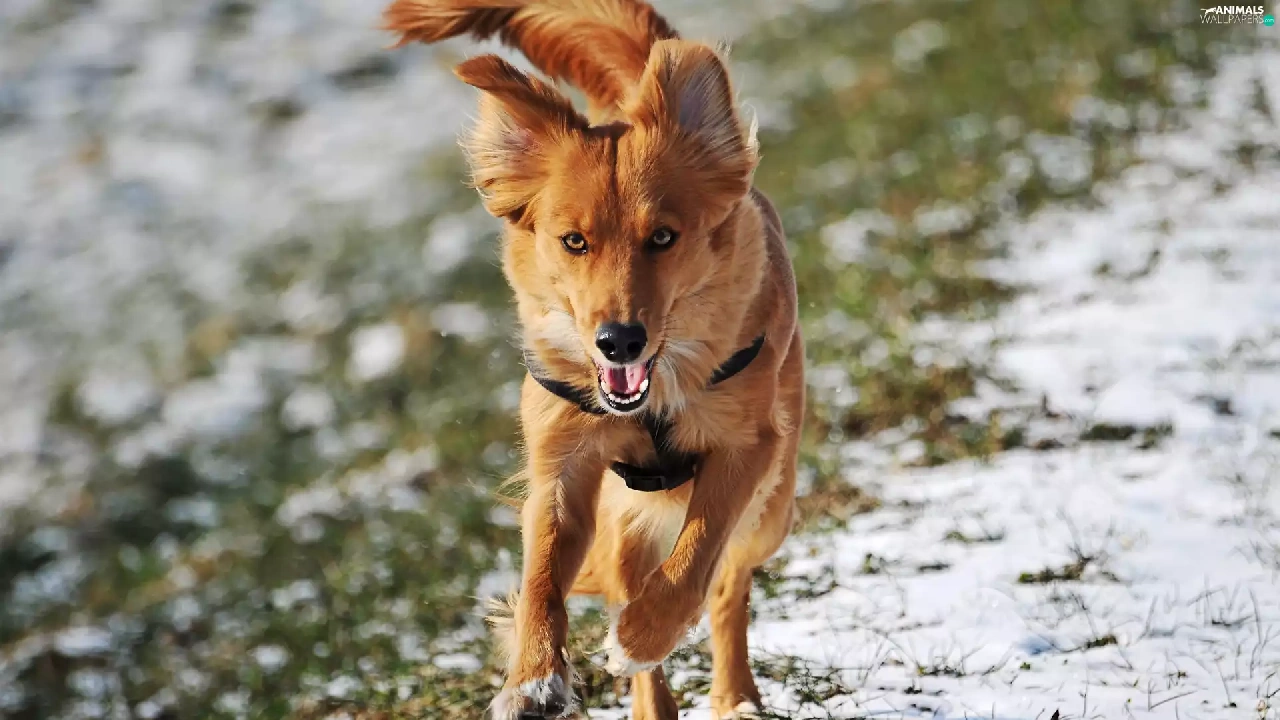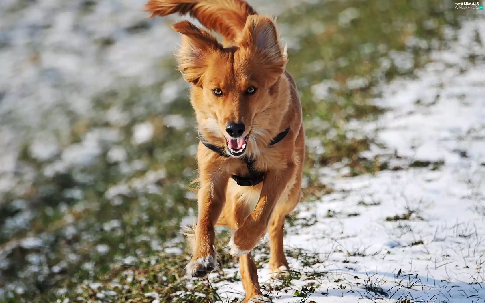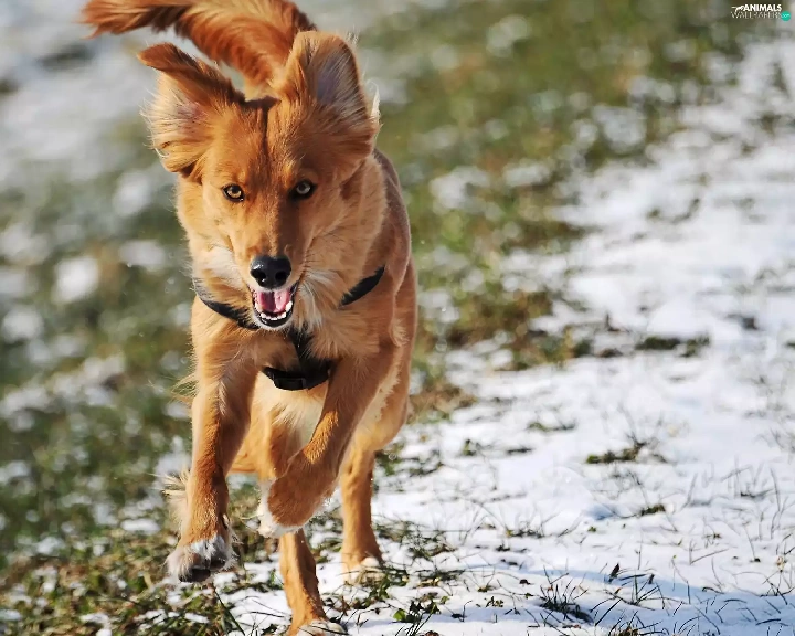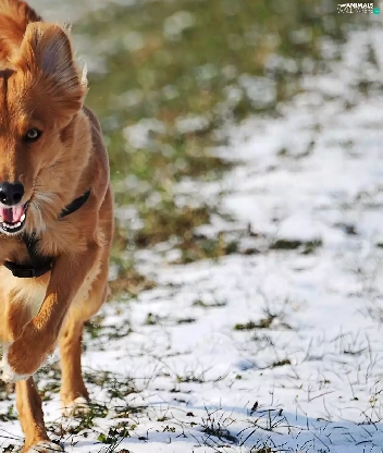dog, winter, running