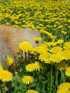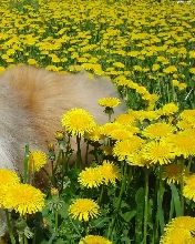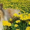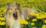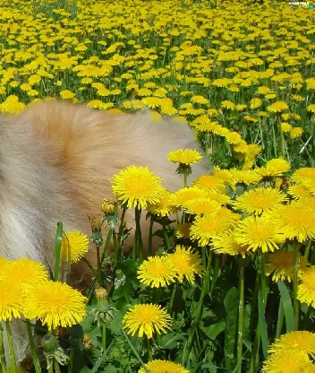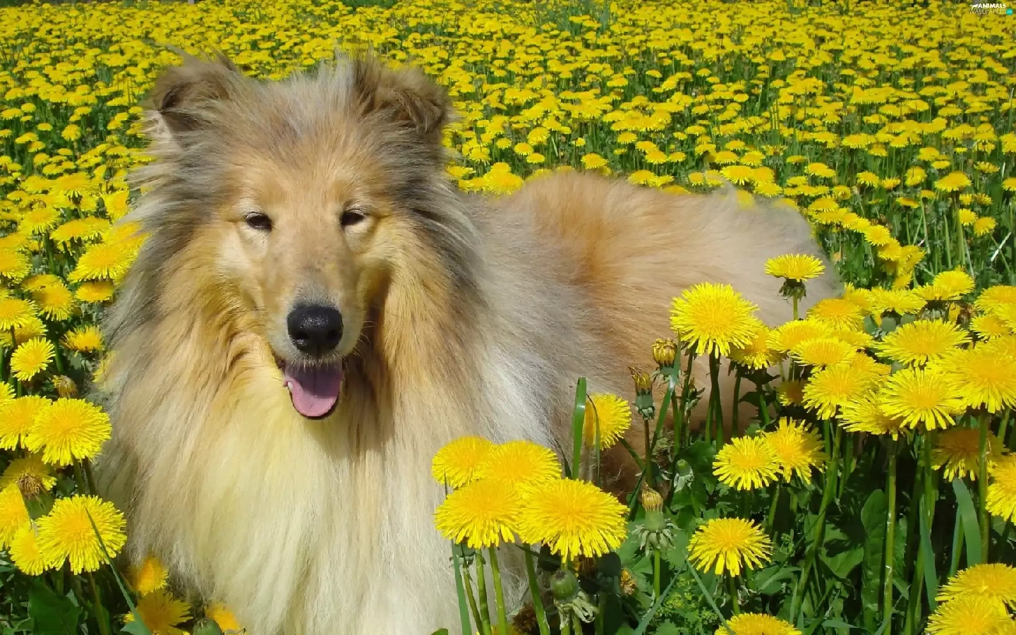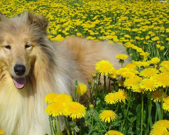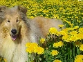 dandelions, dog, Scottish Shepherd Collie