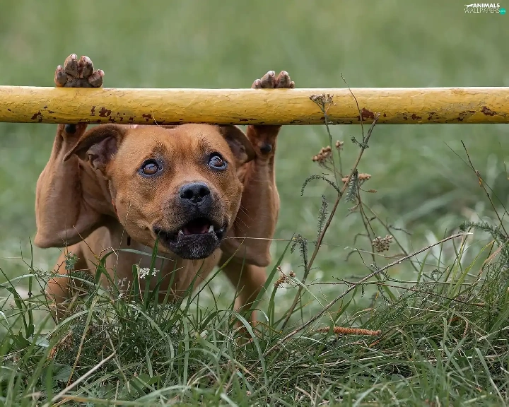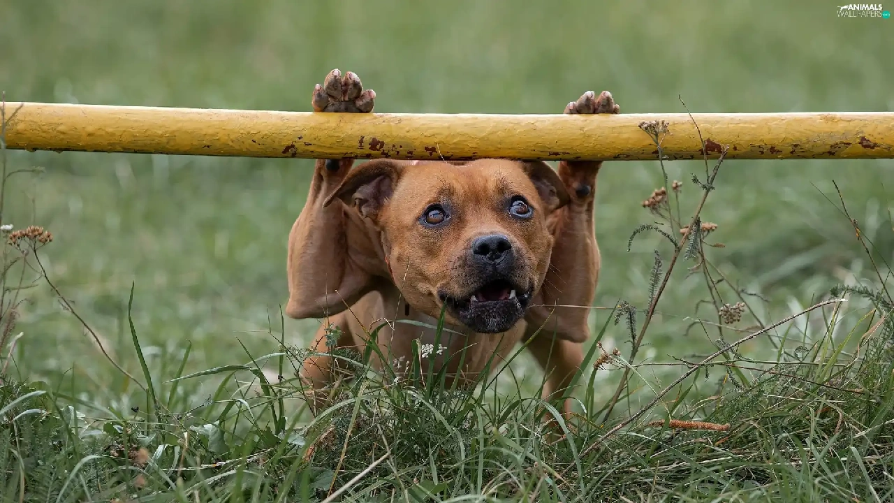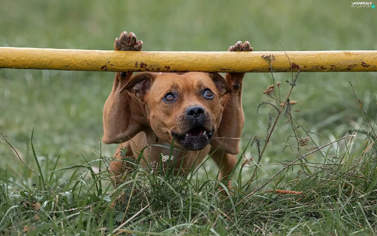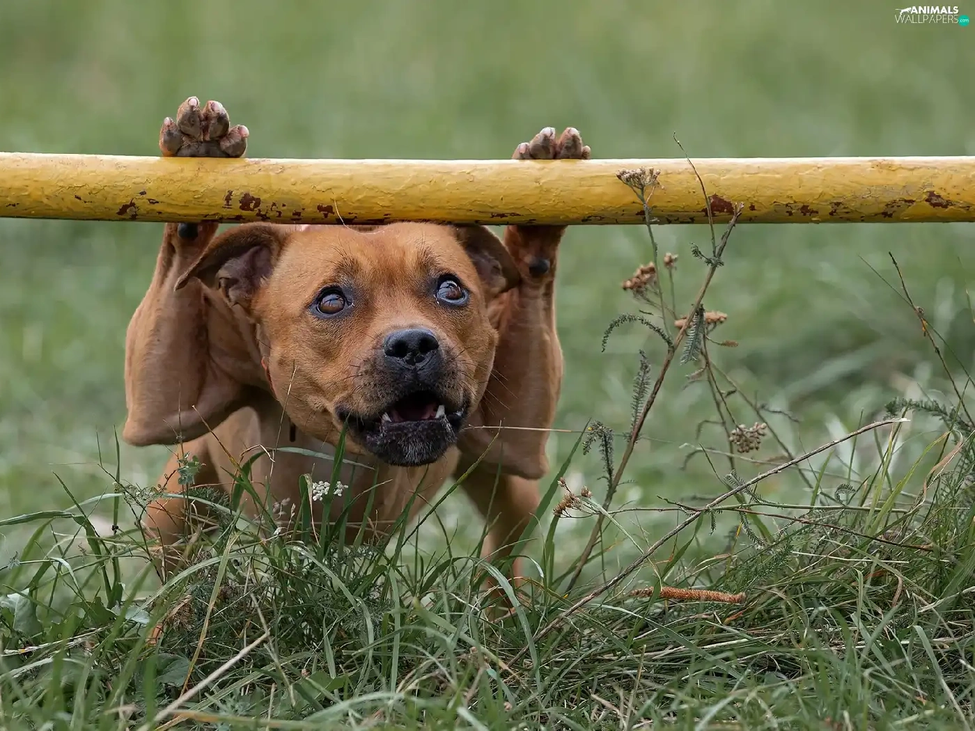 grass, dog, Staffordshire Bull Terrier